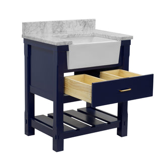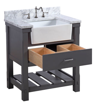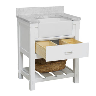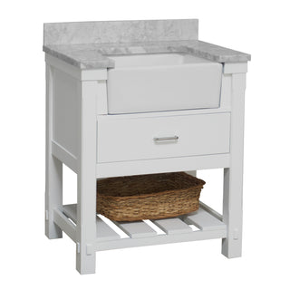 Charlotte 30-inch Farmhouse Vanity with Carrara Marble Top