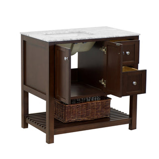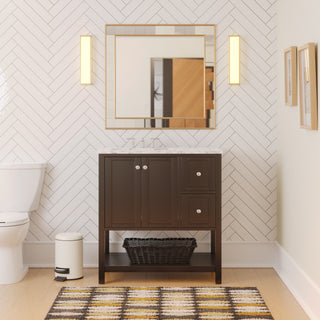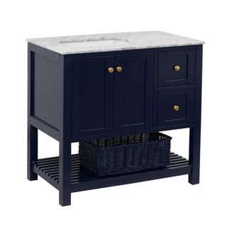Faucet Requirement: Countertop is pre-drilled for one 8" widespread 2-handle faucet (not included)