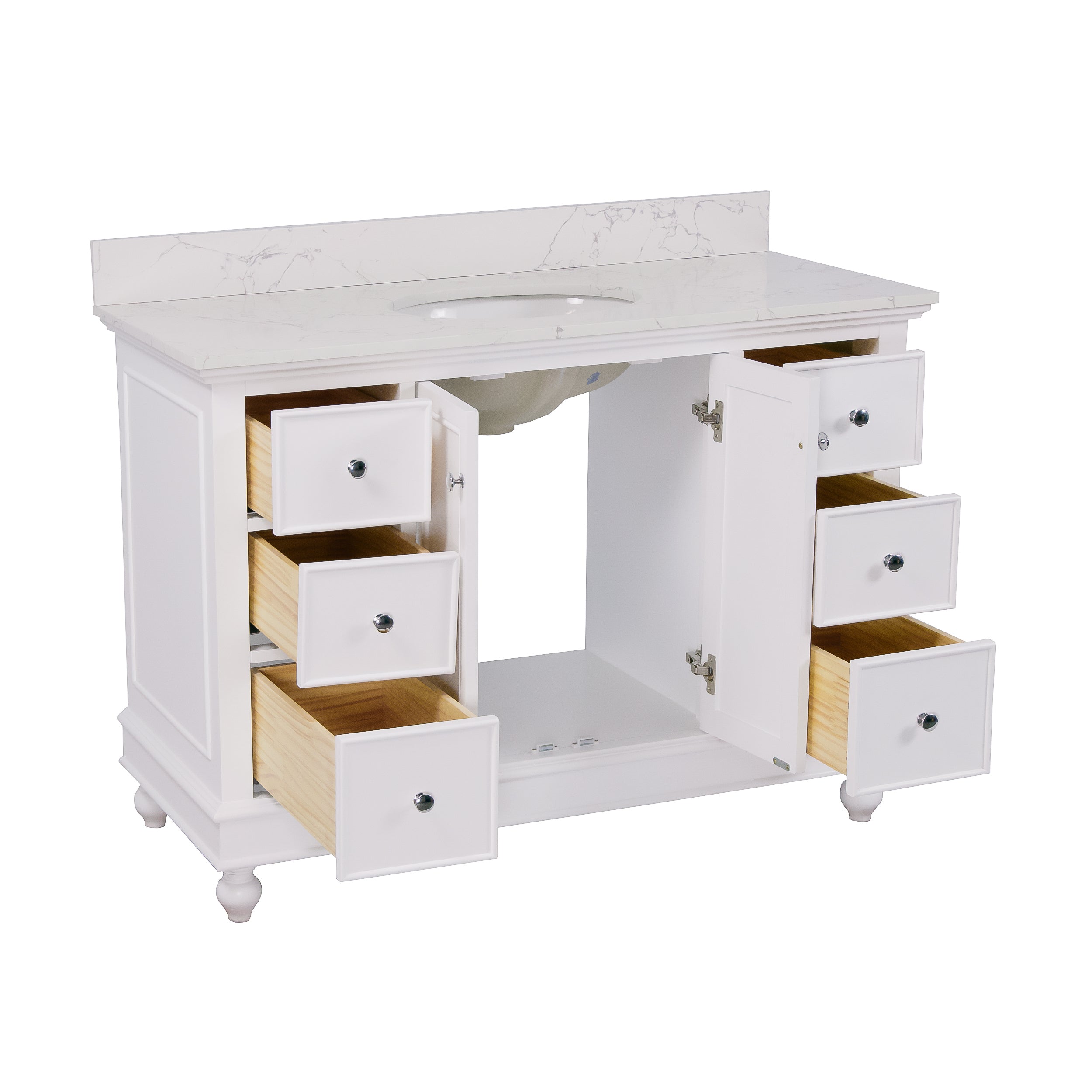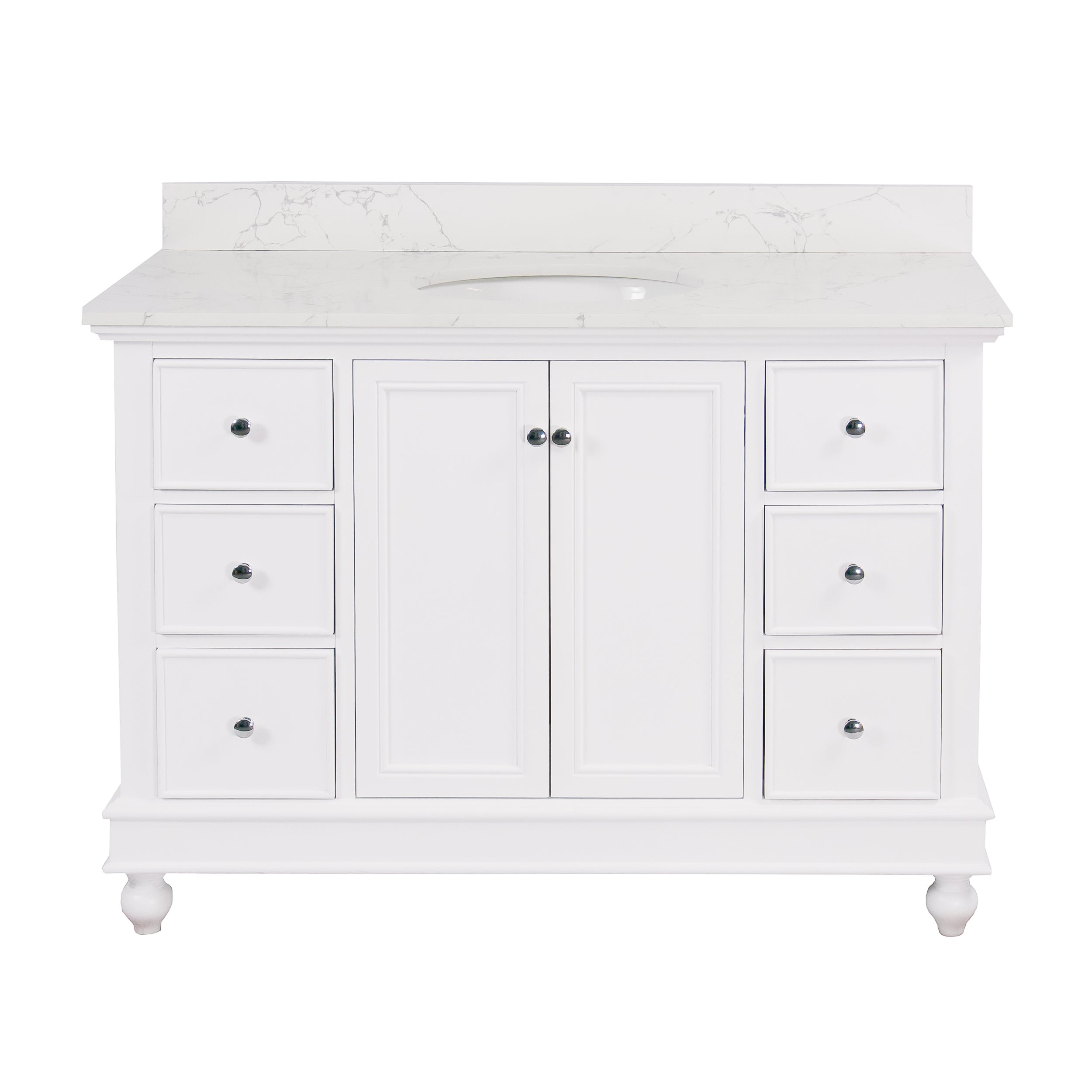 Faucet Requirement: Countertop is pre-drilled for one 8" widespread 2-handle faucet (not included)