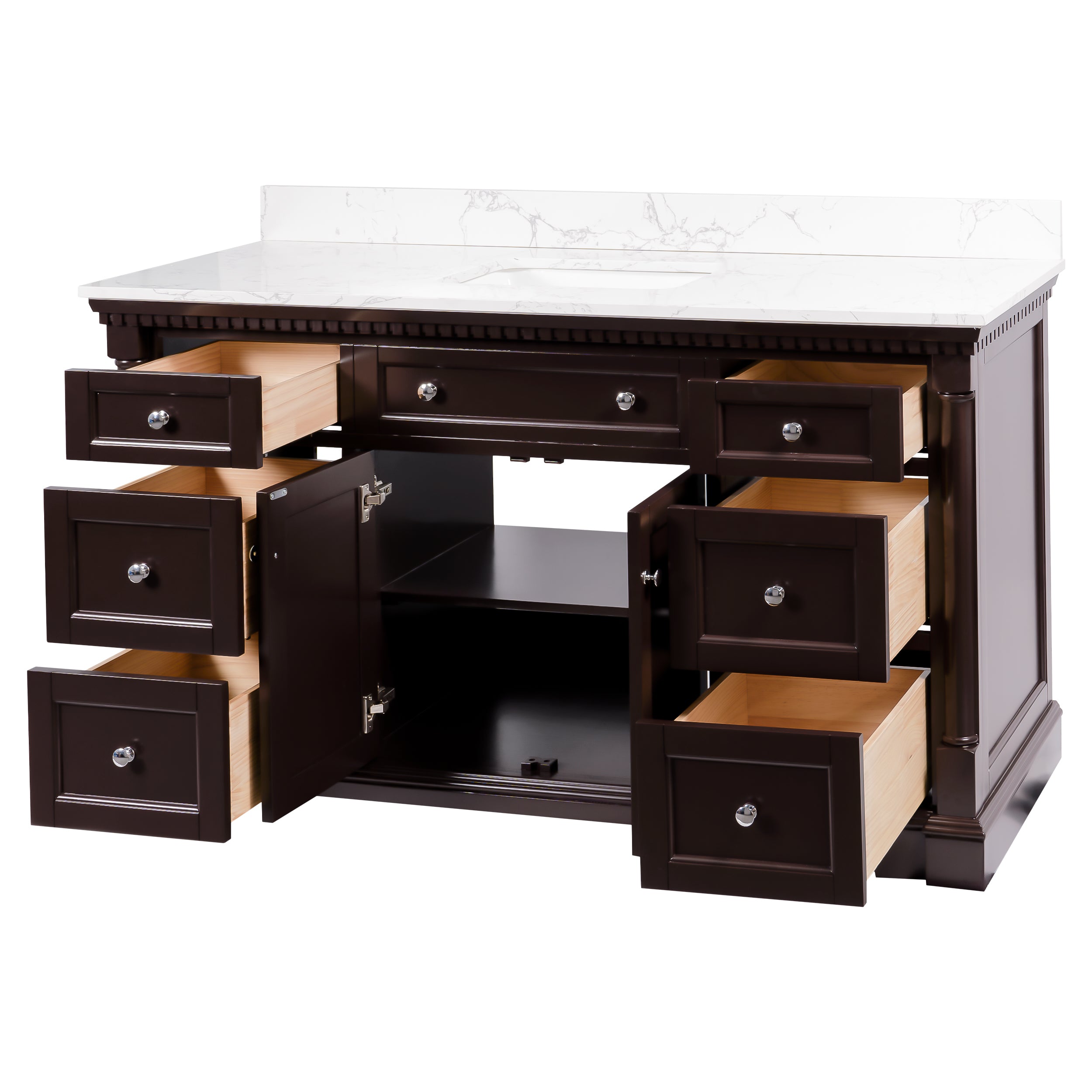 • Premium Construction: Crafted with a combination of solid wood and engineered wood, this vanity boasts high-end, furniture-grade construction for lasting durability.