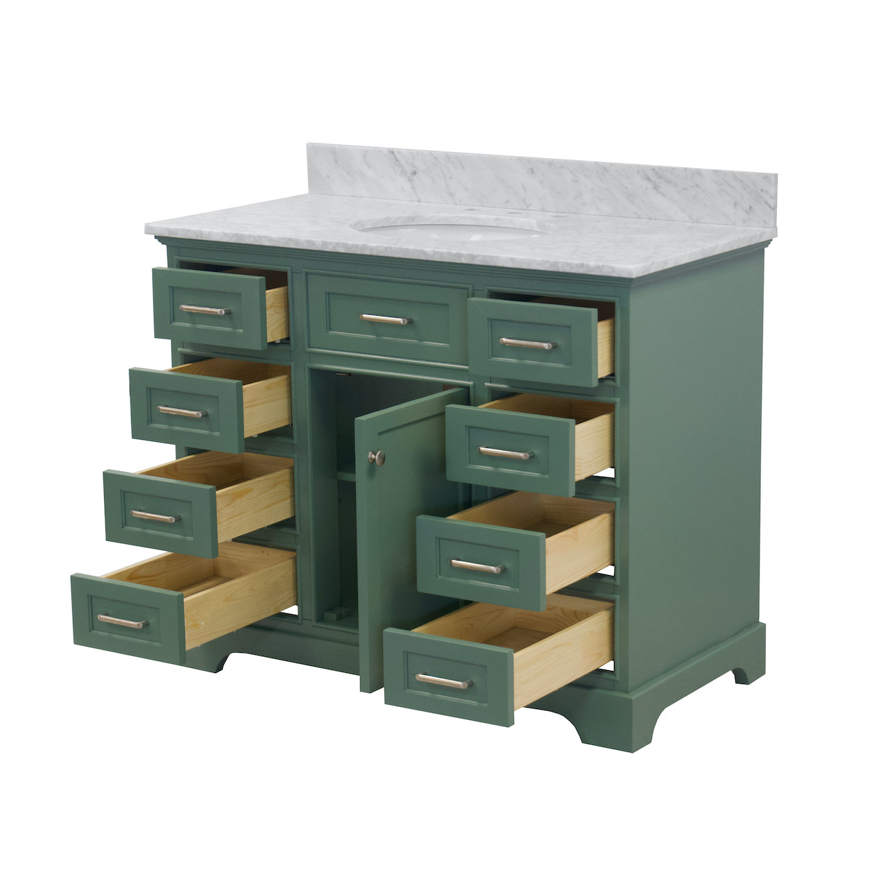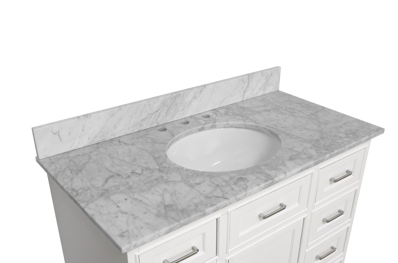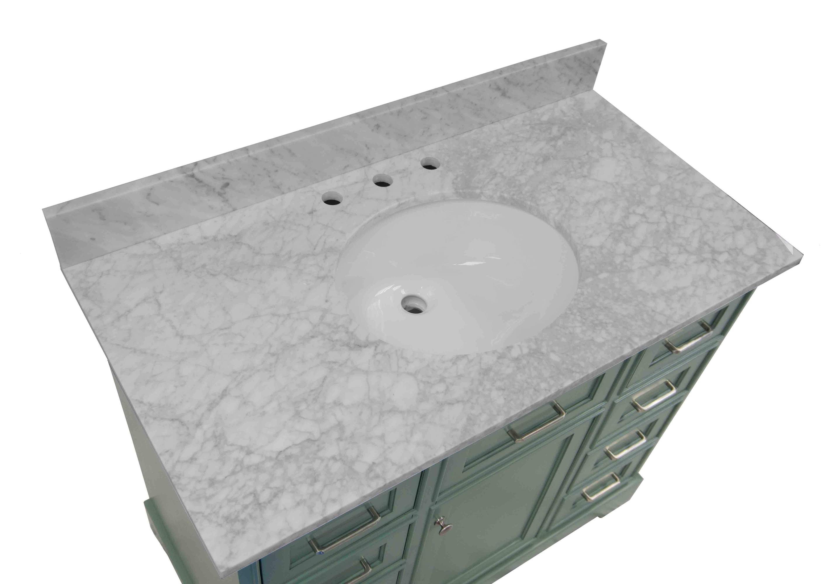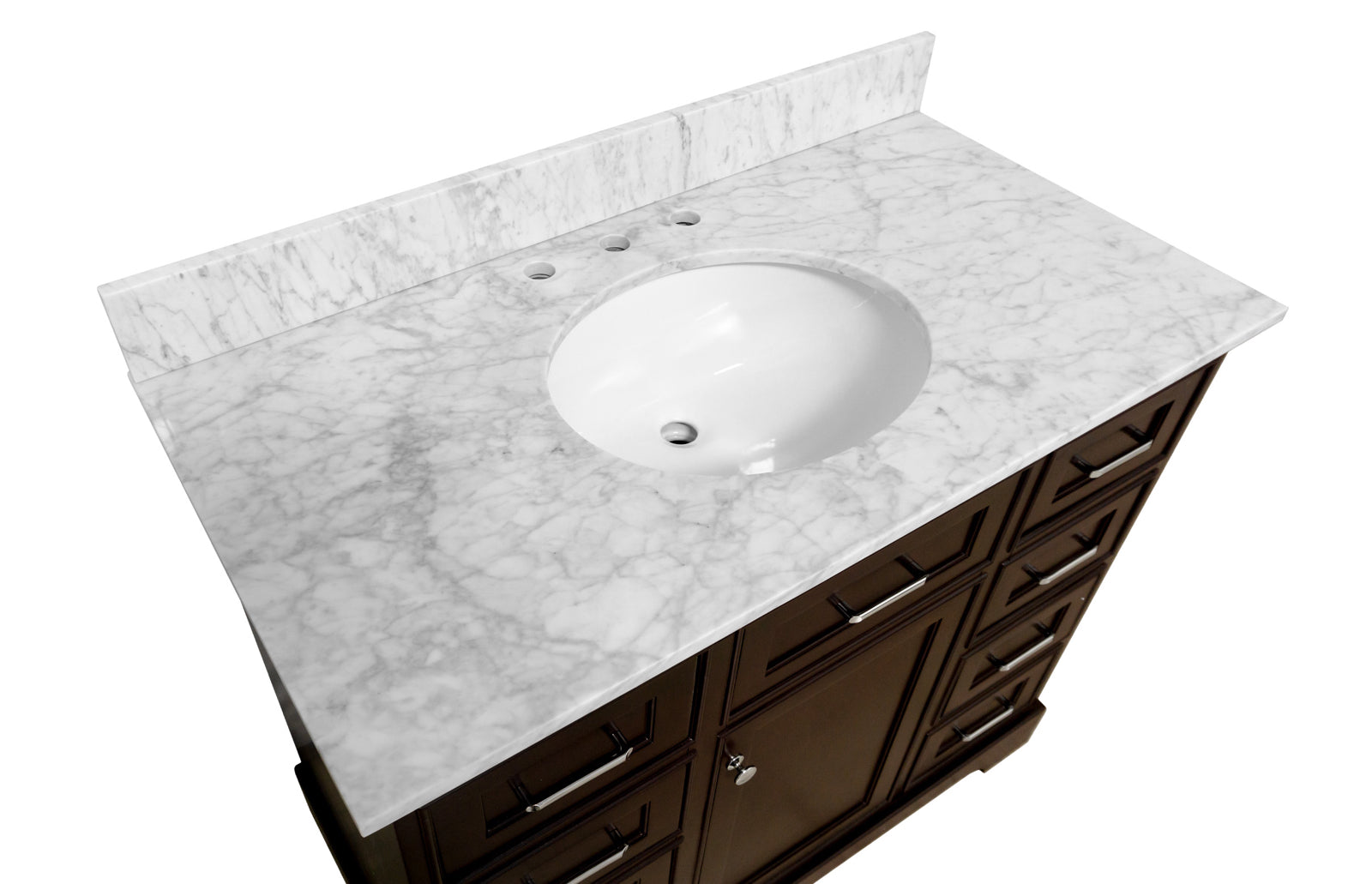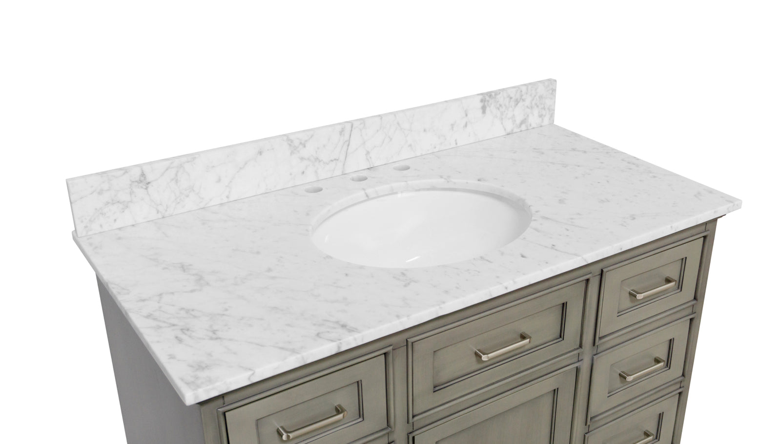 Faucet Requirement: Countertop is pre-drilled for an 8" widespread 2-handle faucet (not included)
