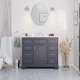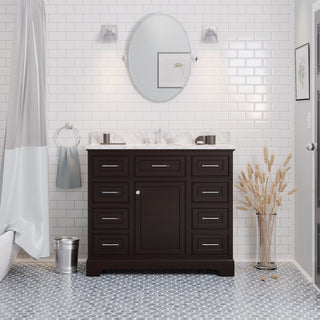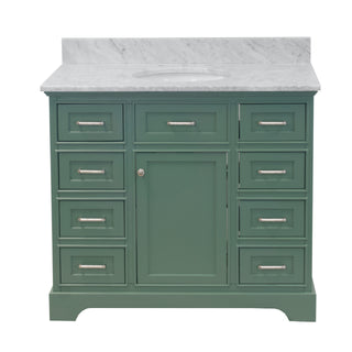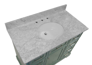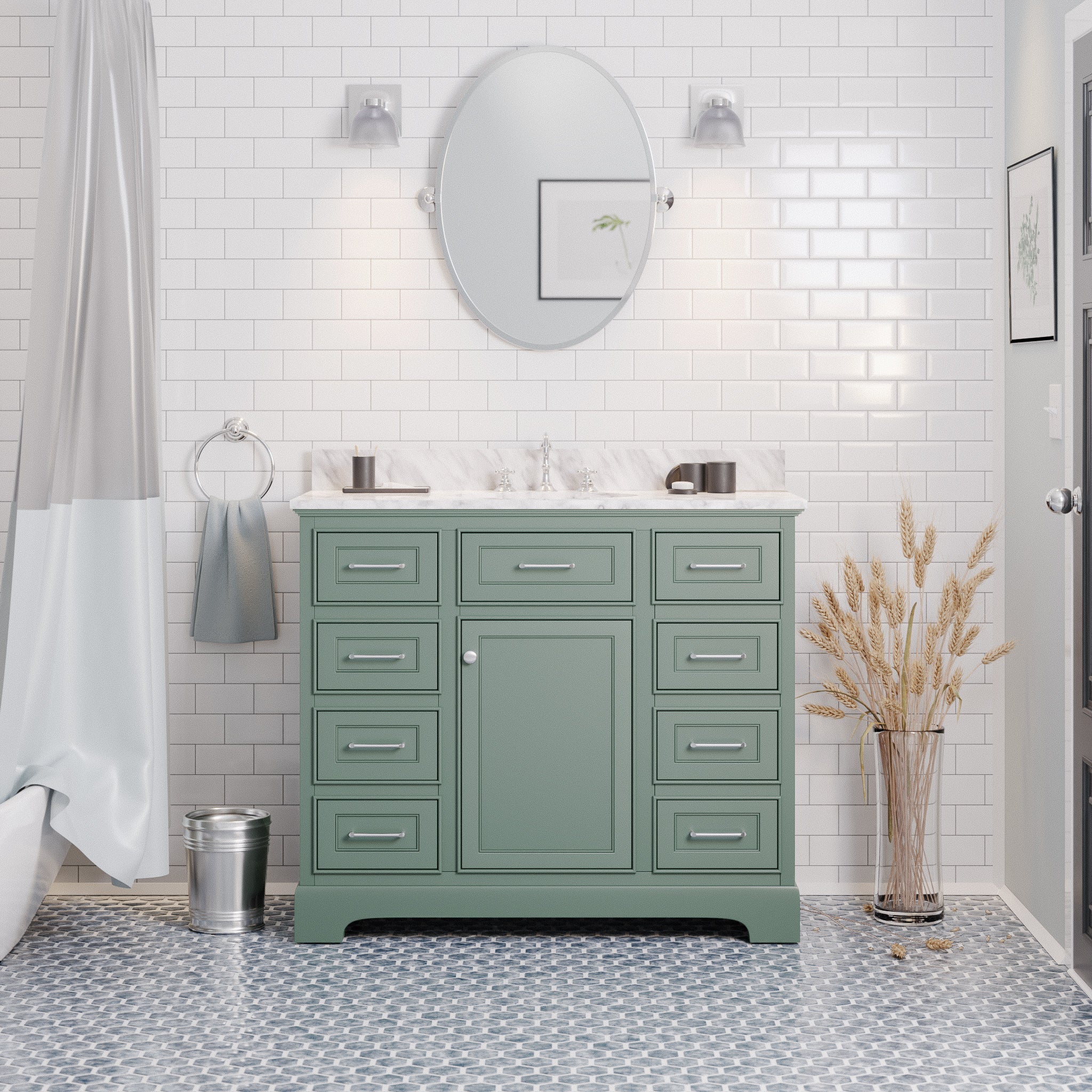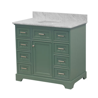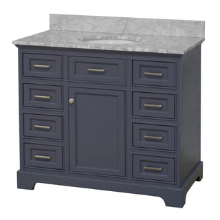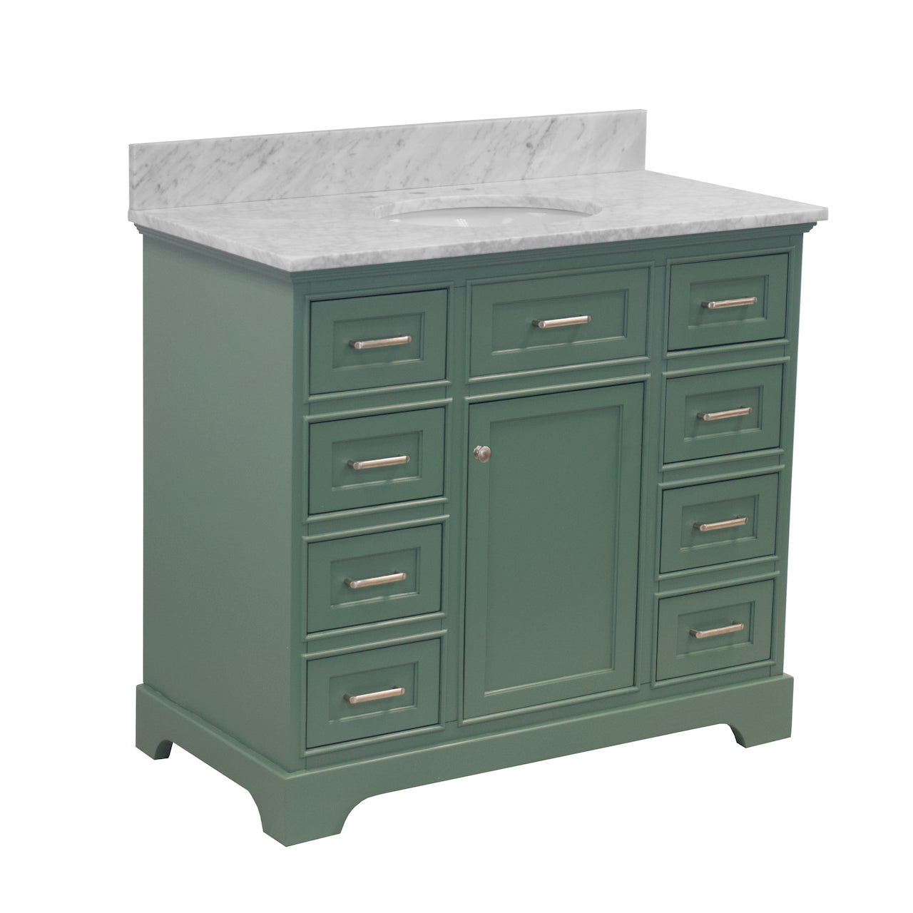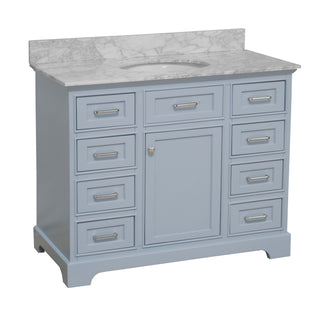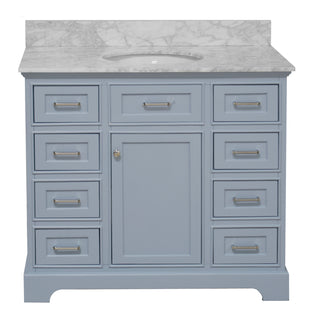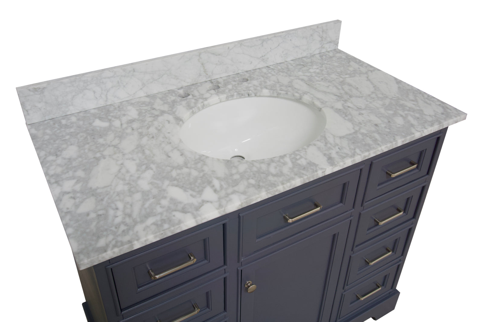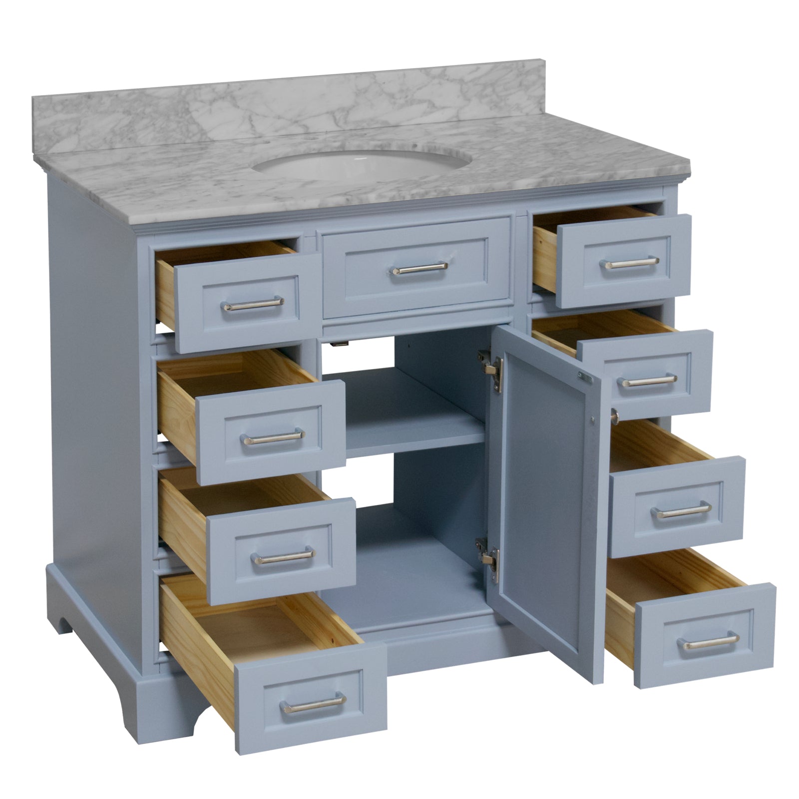 Faucet Requirement: Countertop is pre-drilled for an 8" widespread 2-handle faucet (not included)