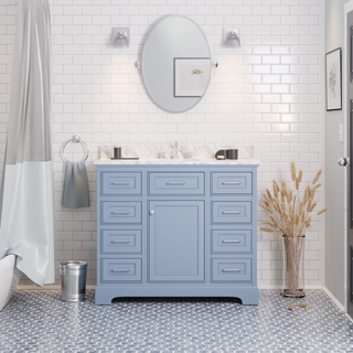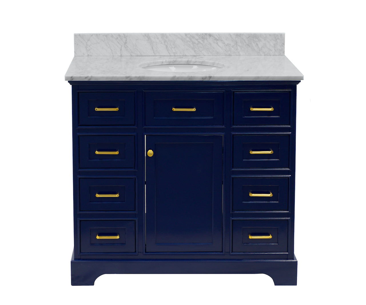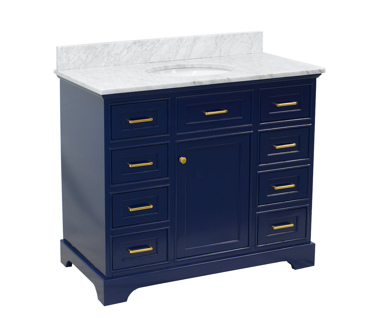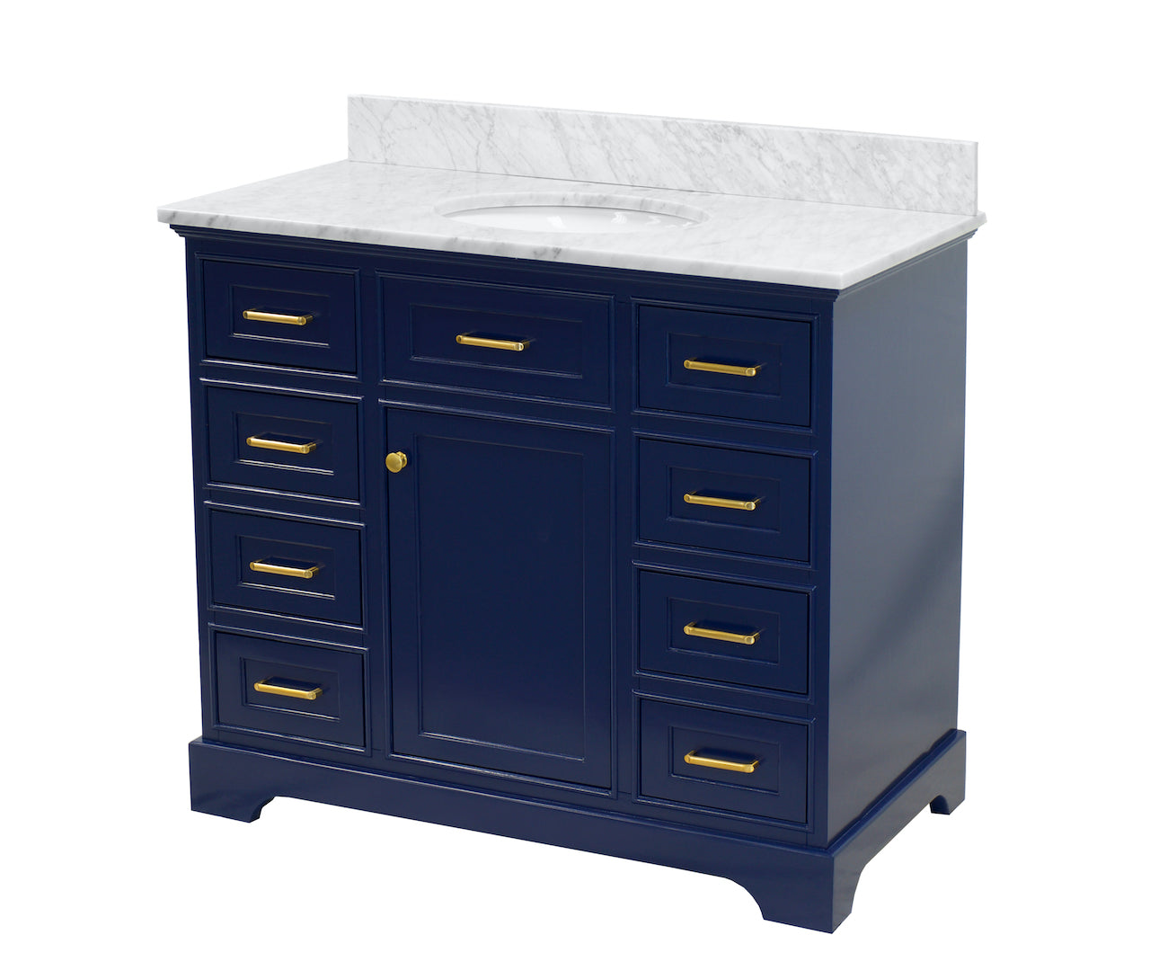 Hardware Finish: White, Chocolate & Powder Blue Cabinets - Polished Chrome. Weathered Gray, Marine Gray & Sage Green Cabinets - Brushed Nickel. Royal Blue Cabinet - Gold.