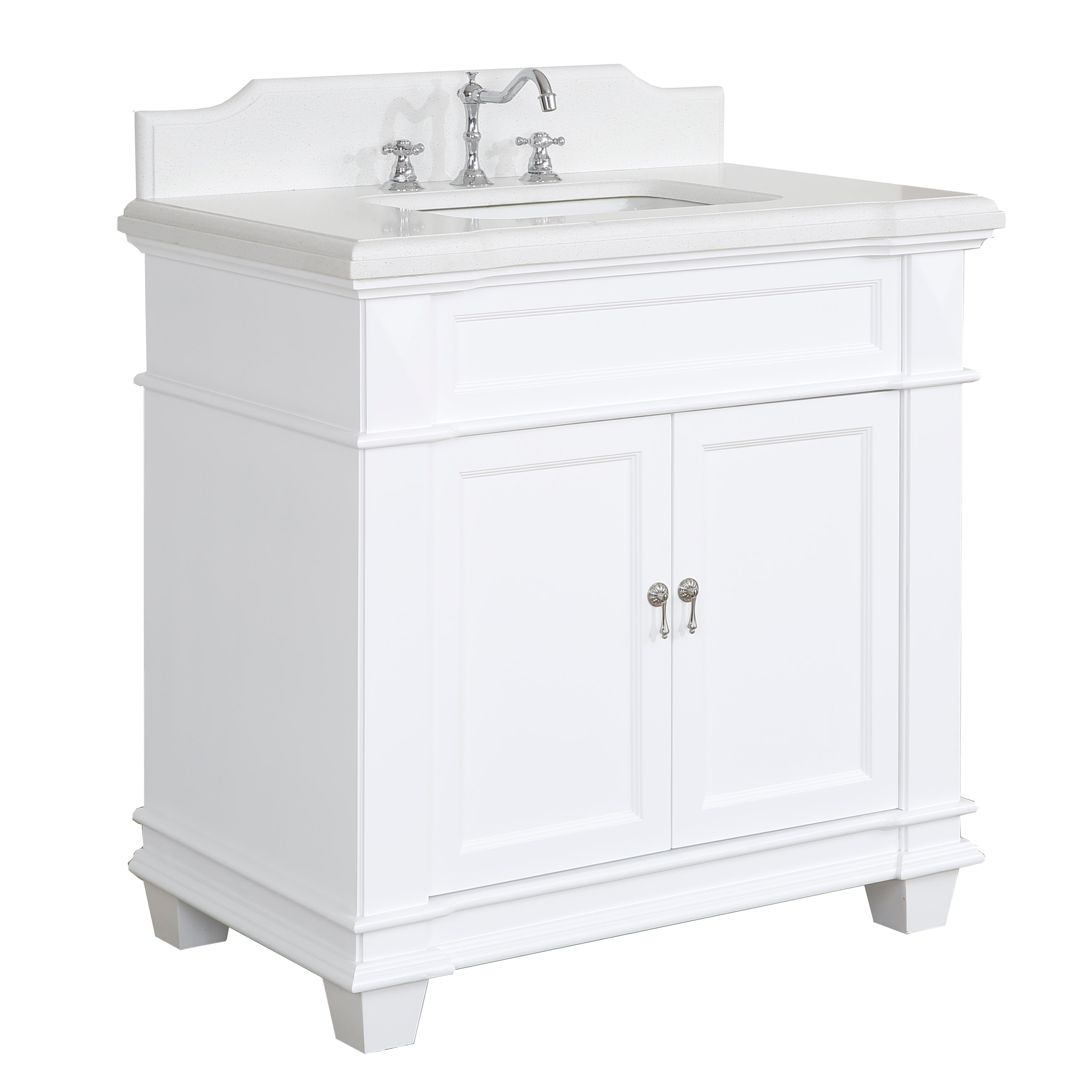 Faucet Requirement: Countertop is pre-drilled for one 8" widespread 2-handle faucet (not included)