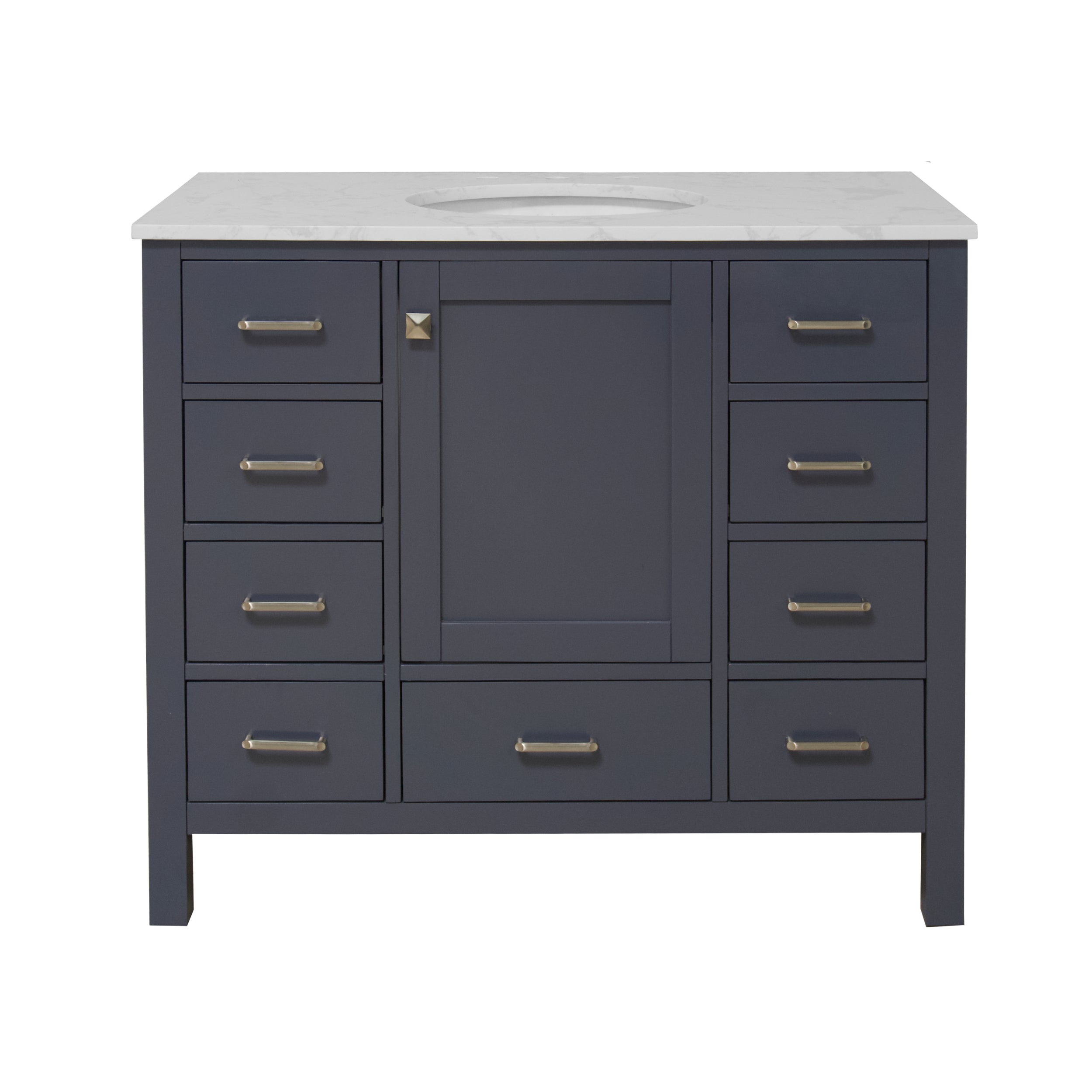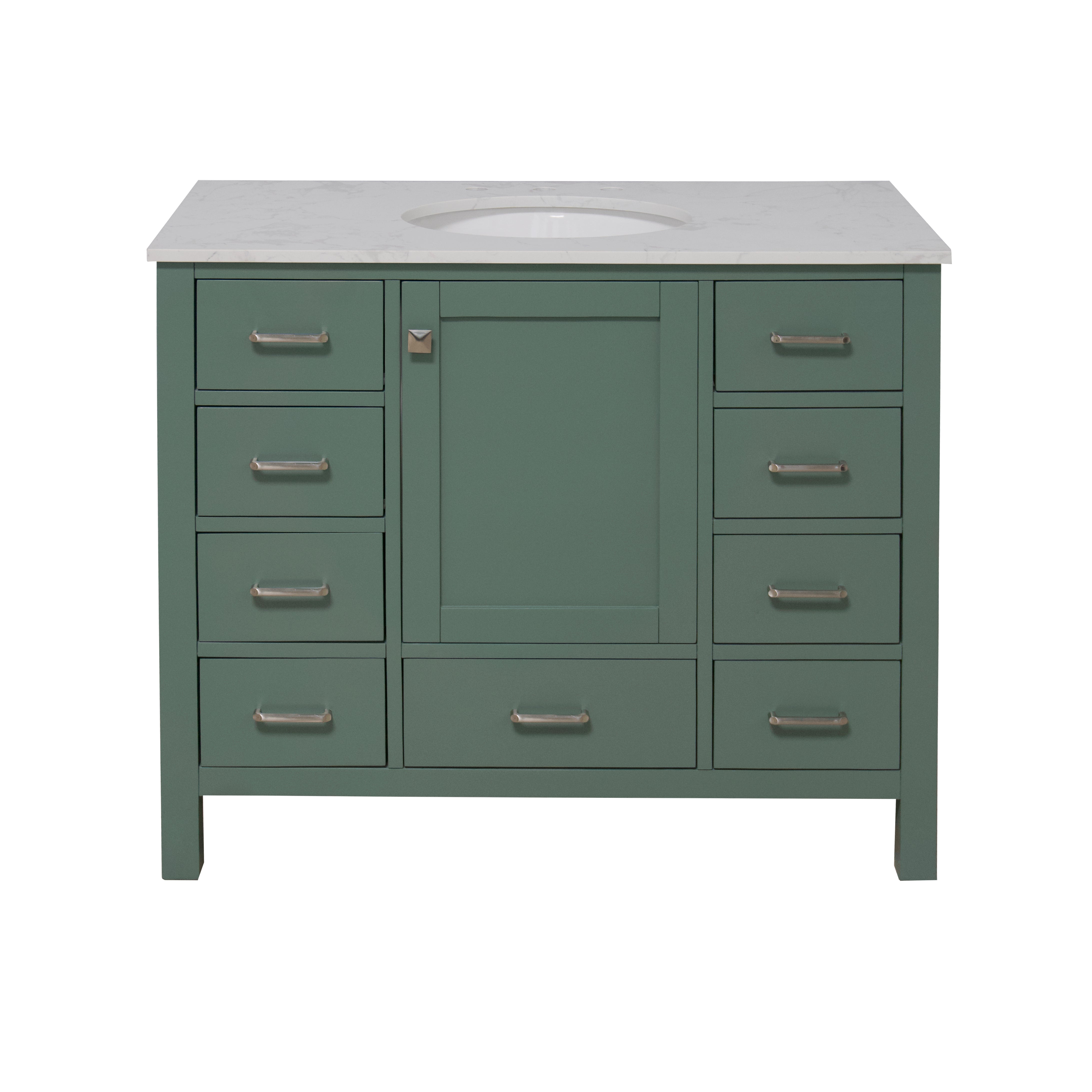 • Countertop is durable and low-maintenance, making this vanity suitable for powder rooms, kids bathrooms, and rental properties. Just wipe clean with gentle household cleaners - no sealing required.