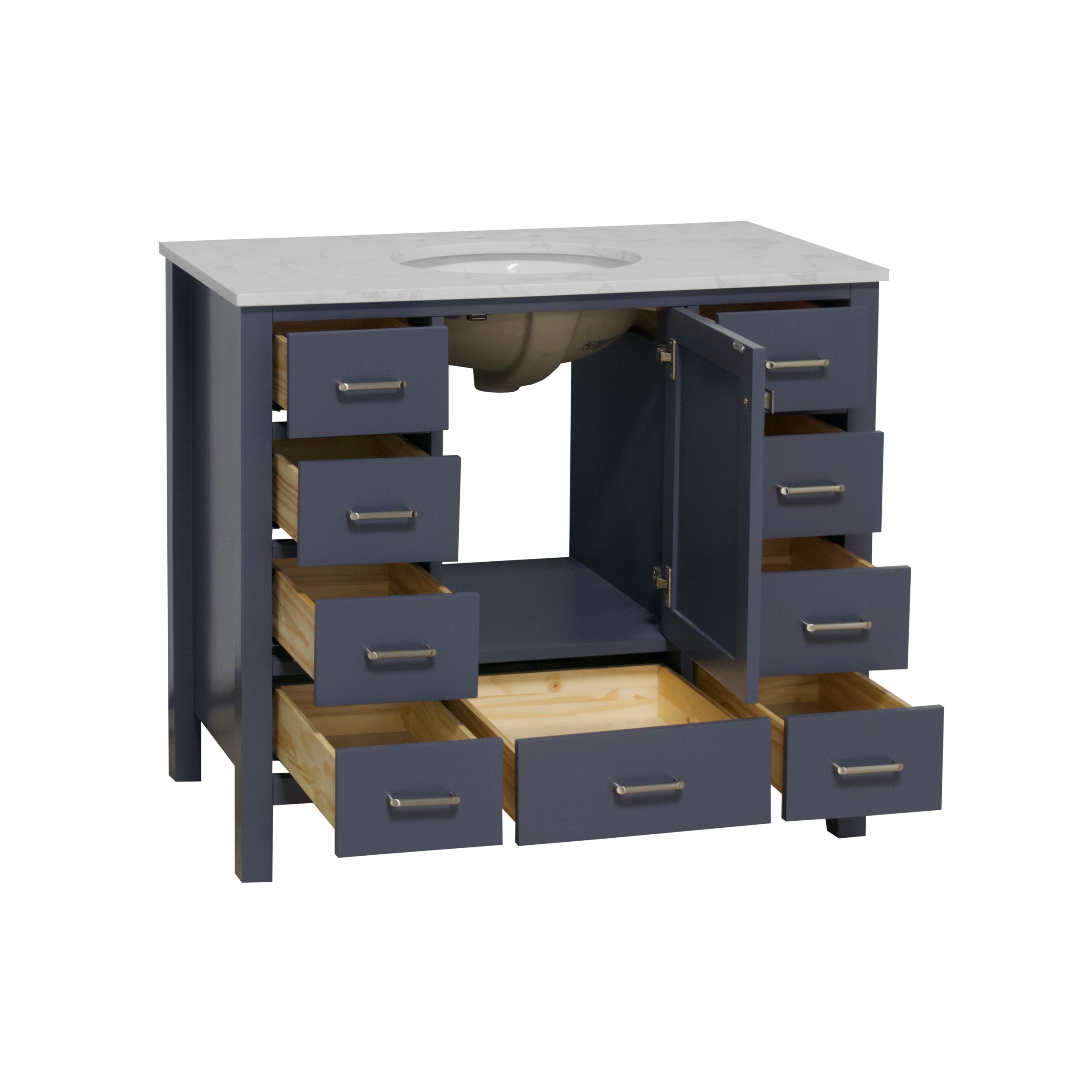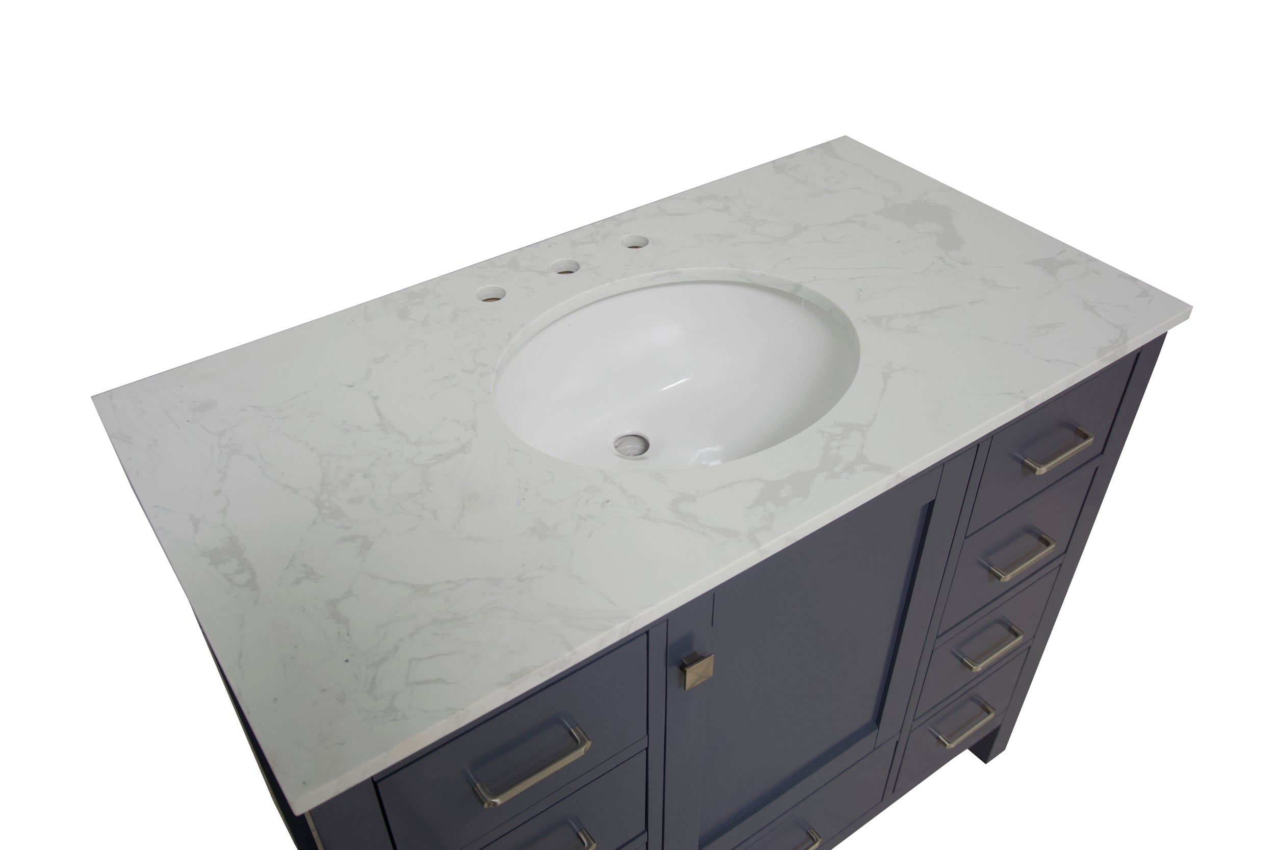 • Engineered Carrara top with beautiful veining designed to resemble authentic Carrara marble. Please note that like natural marble, the color and/or pattern of each countertop may vary from the pictures.