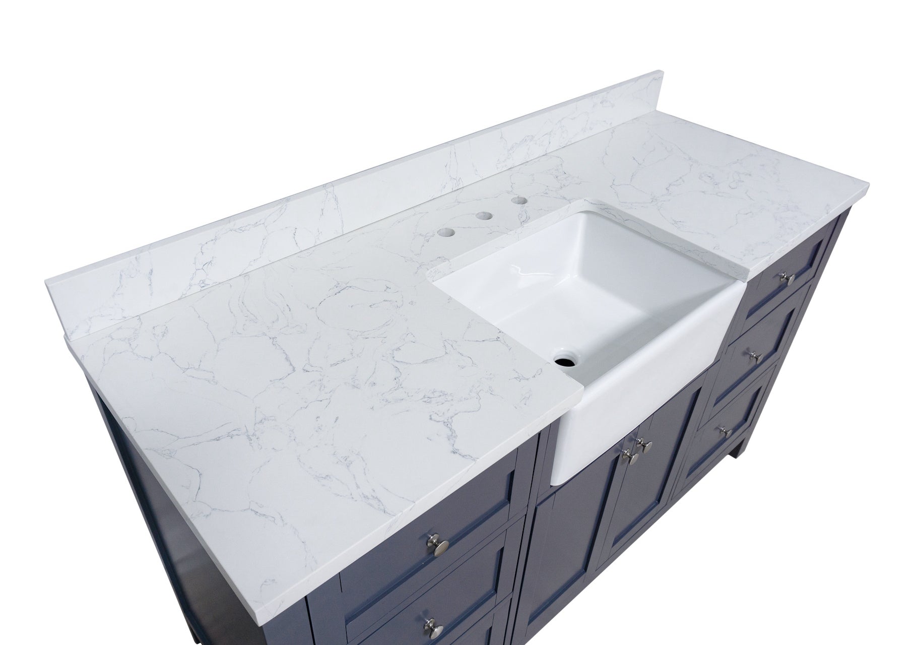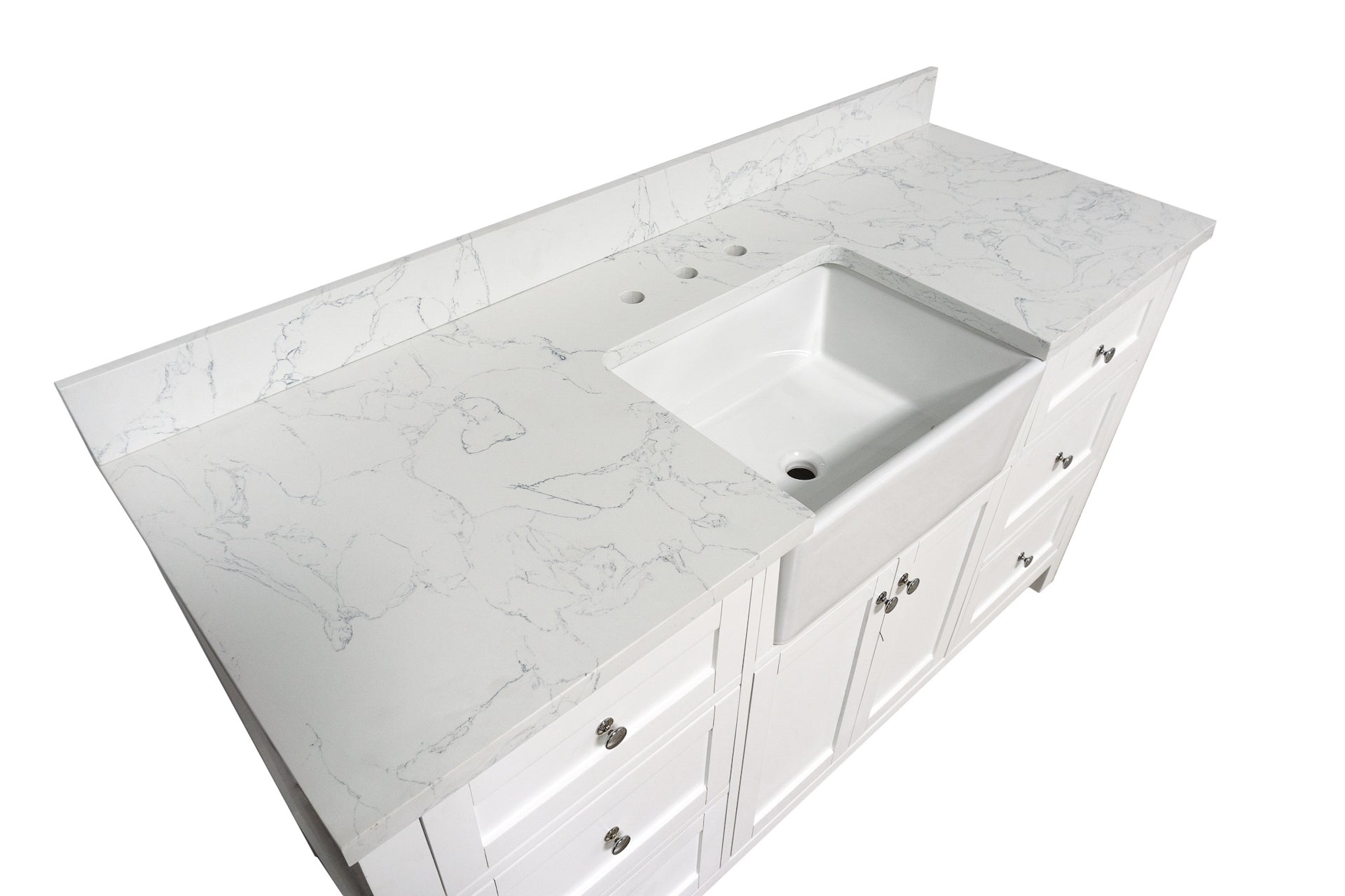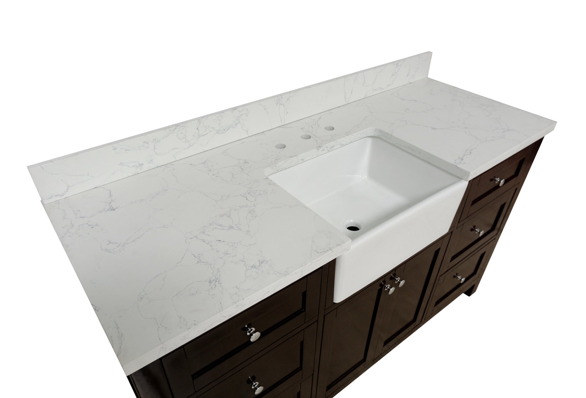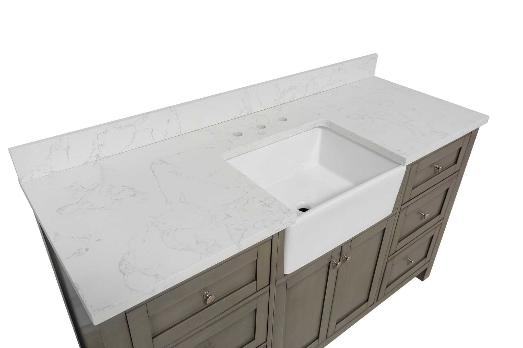 Faucet Requirement: Countertop is pre-drilled for one 8" widespread 2-handle faucet (not included)