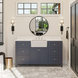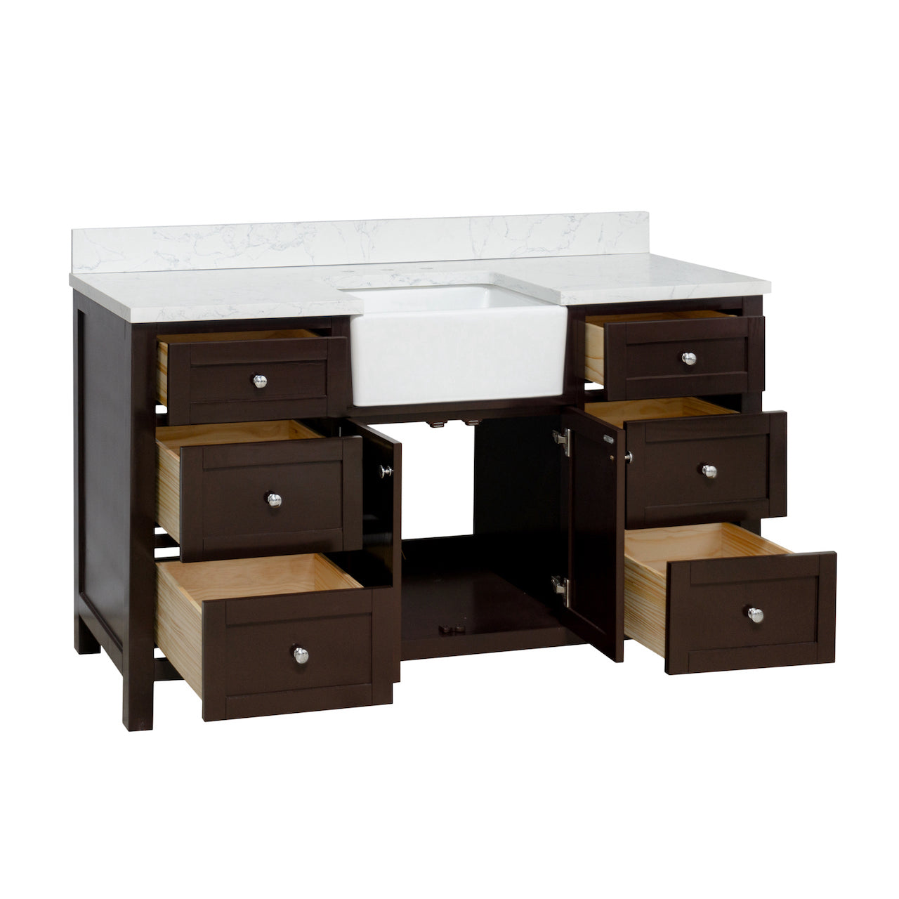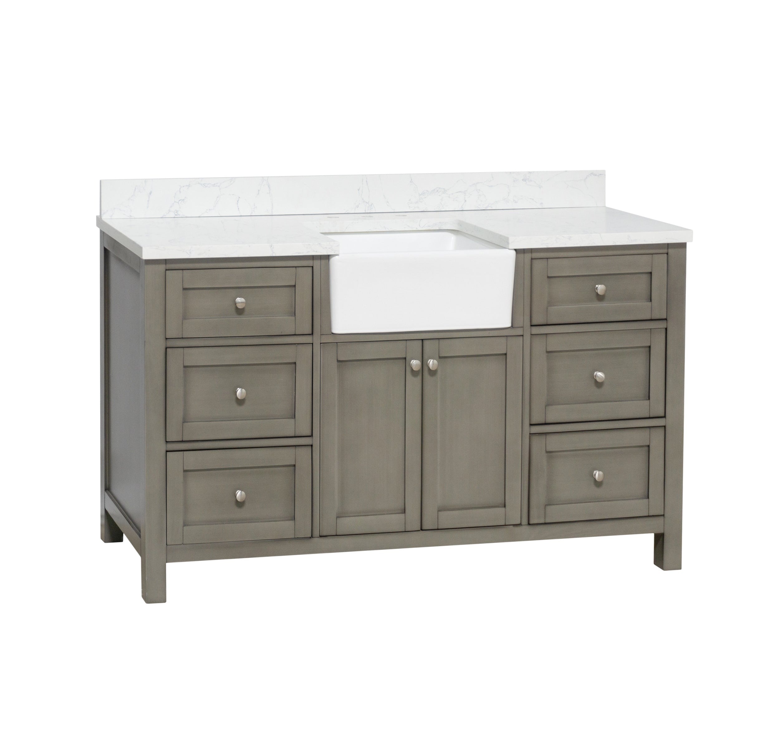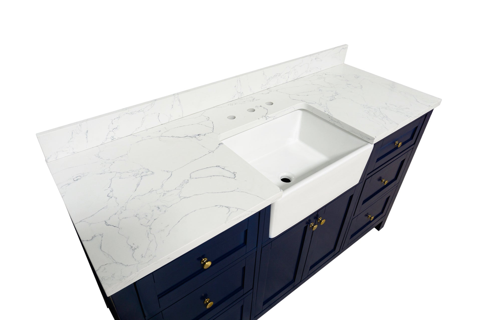 Faucet Requirement: Countertop is pre-drilled for one 8" widespread 2-handle faucet (not included)
