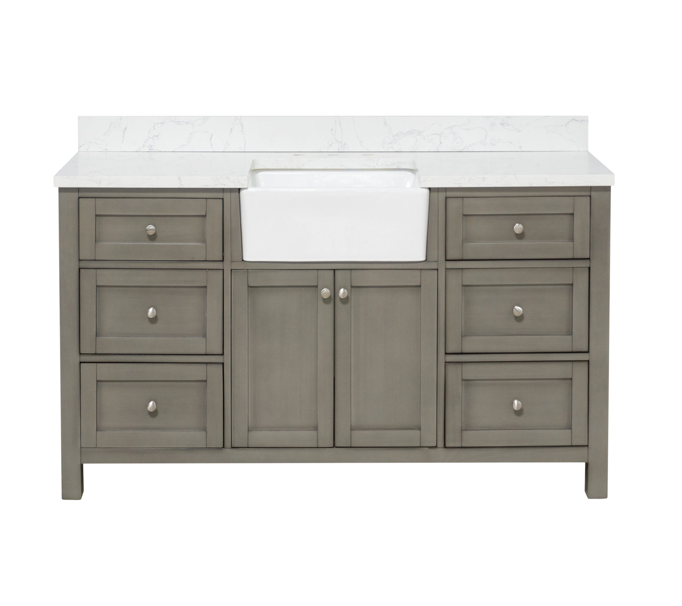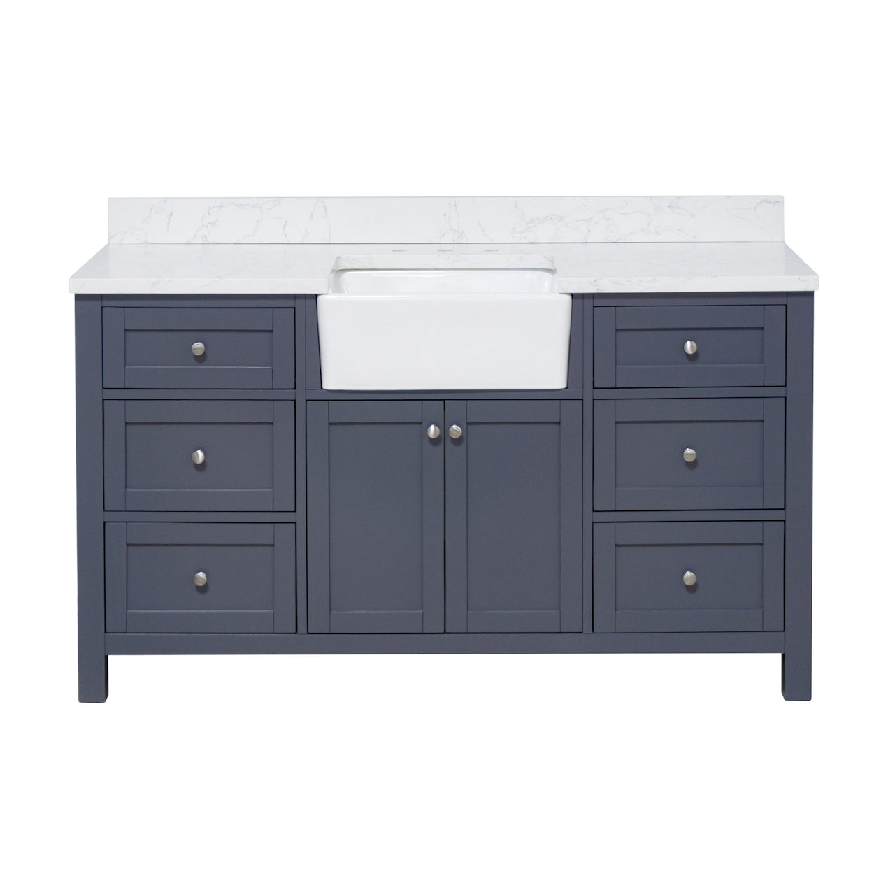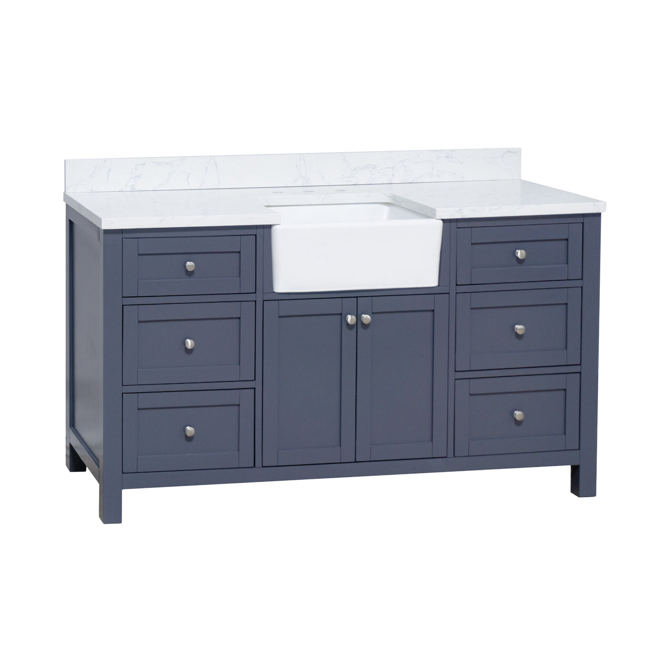 Hardware Finish: White & Chocolate Cabinets - Polished Chrome. Weathered Gray, Marine Gray & Sage Green Cabinets - Brushed Nickel. Royal Blue Cabinet - Gold.