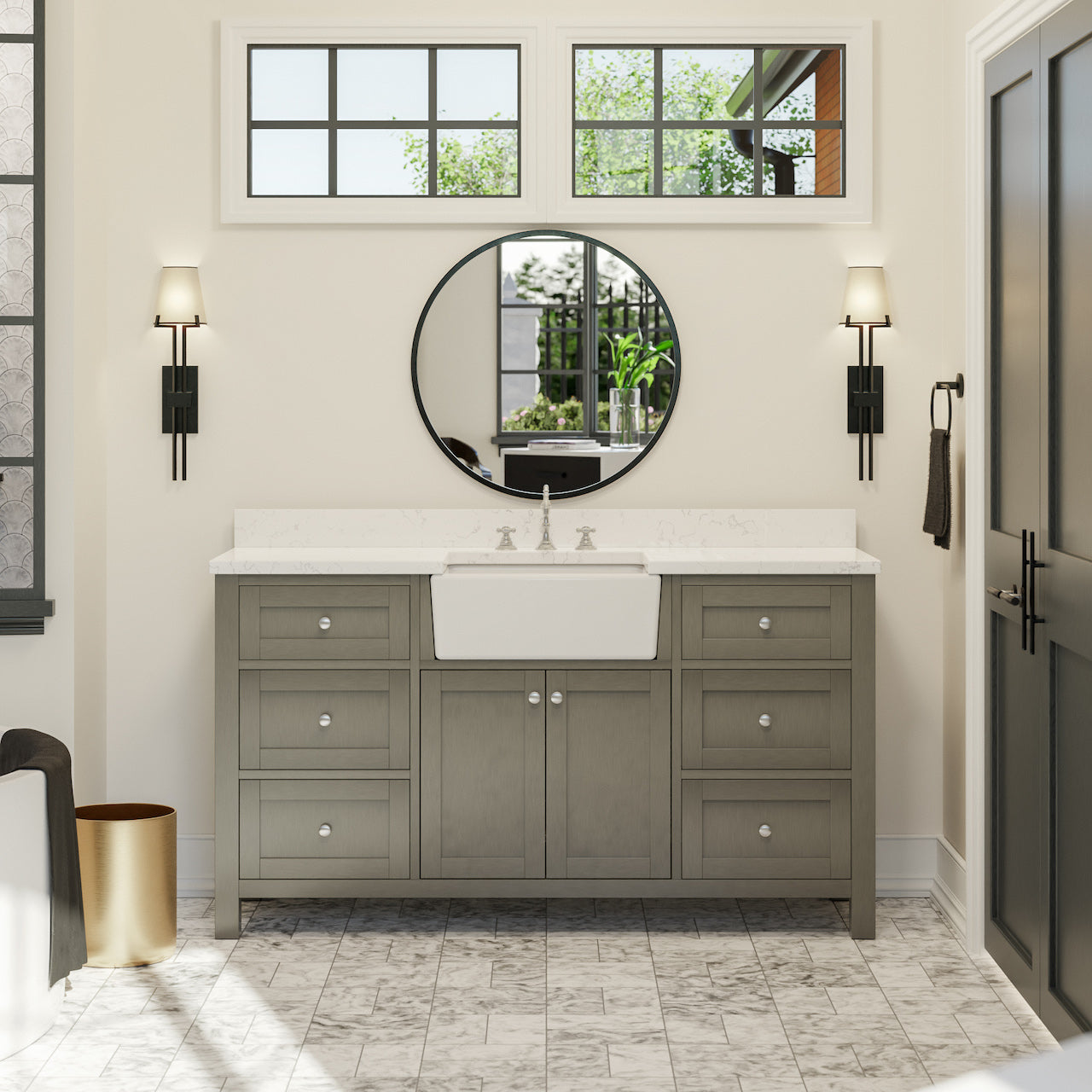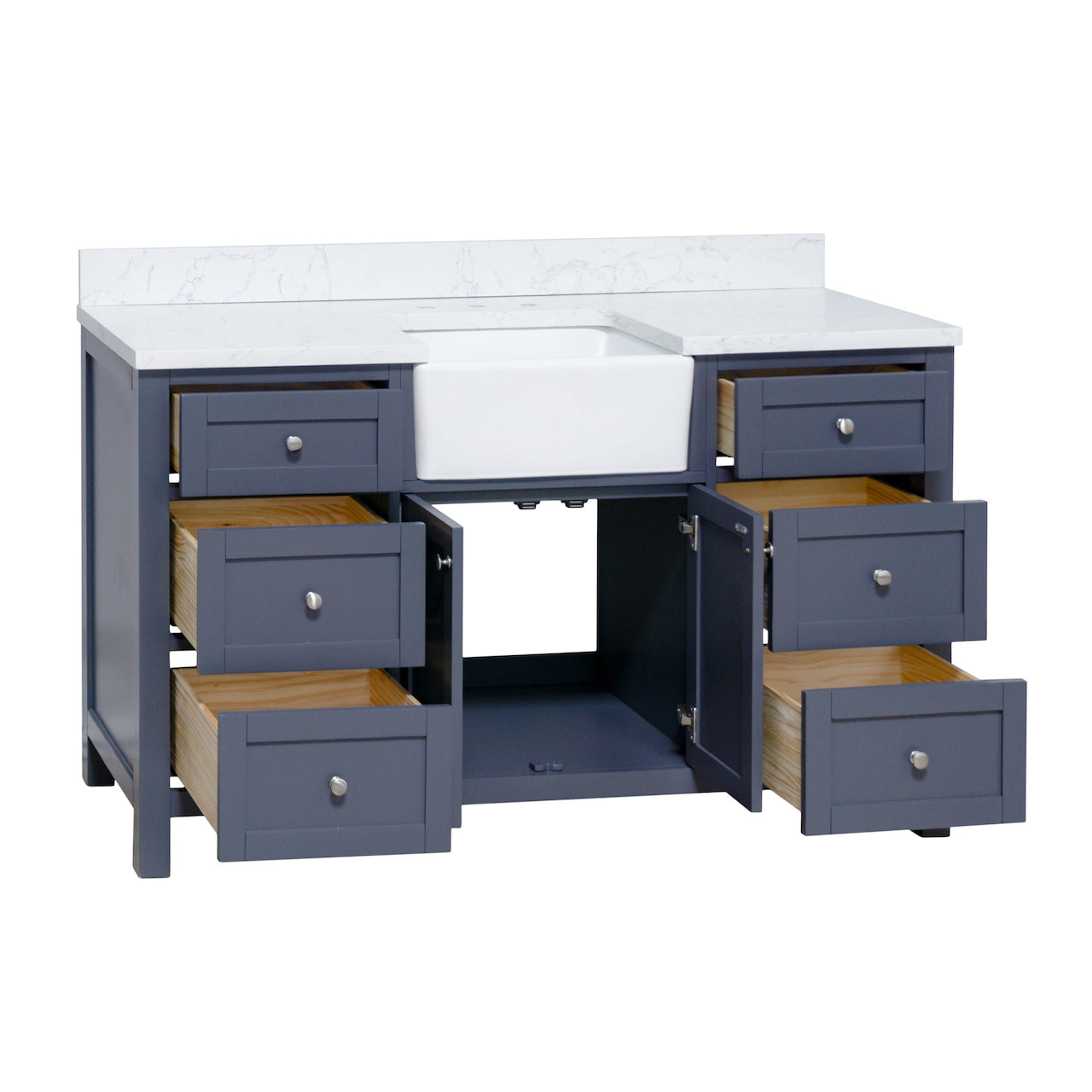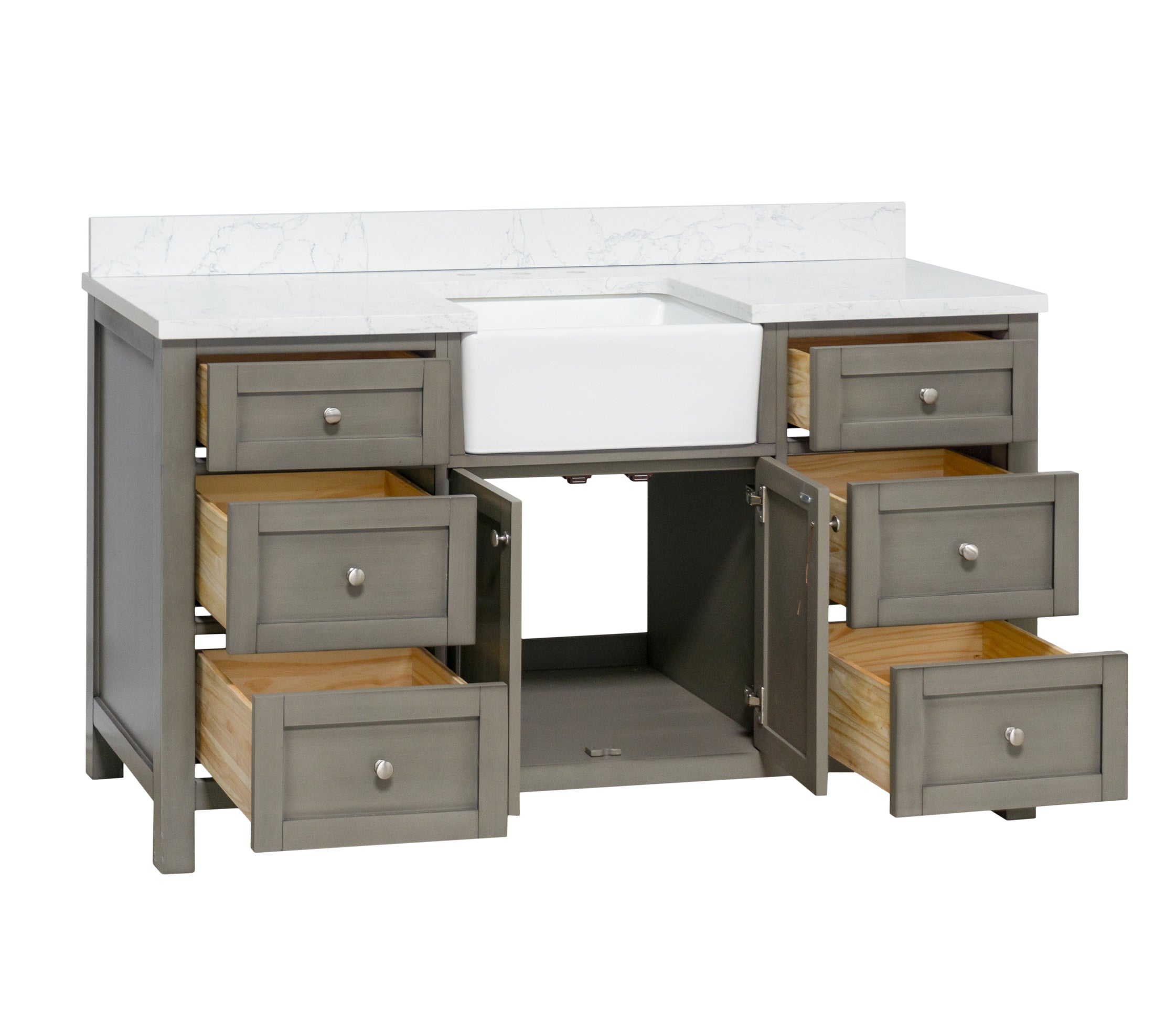 Hardware Finish: White & Chocolate Cabinets - Polished Chrome. Weathered Gray, Marine Gray & Sage Green Cabinets - Brushed Nickel. Royal Blue Cabinet - Gold.