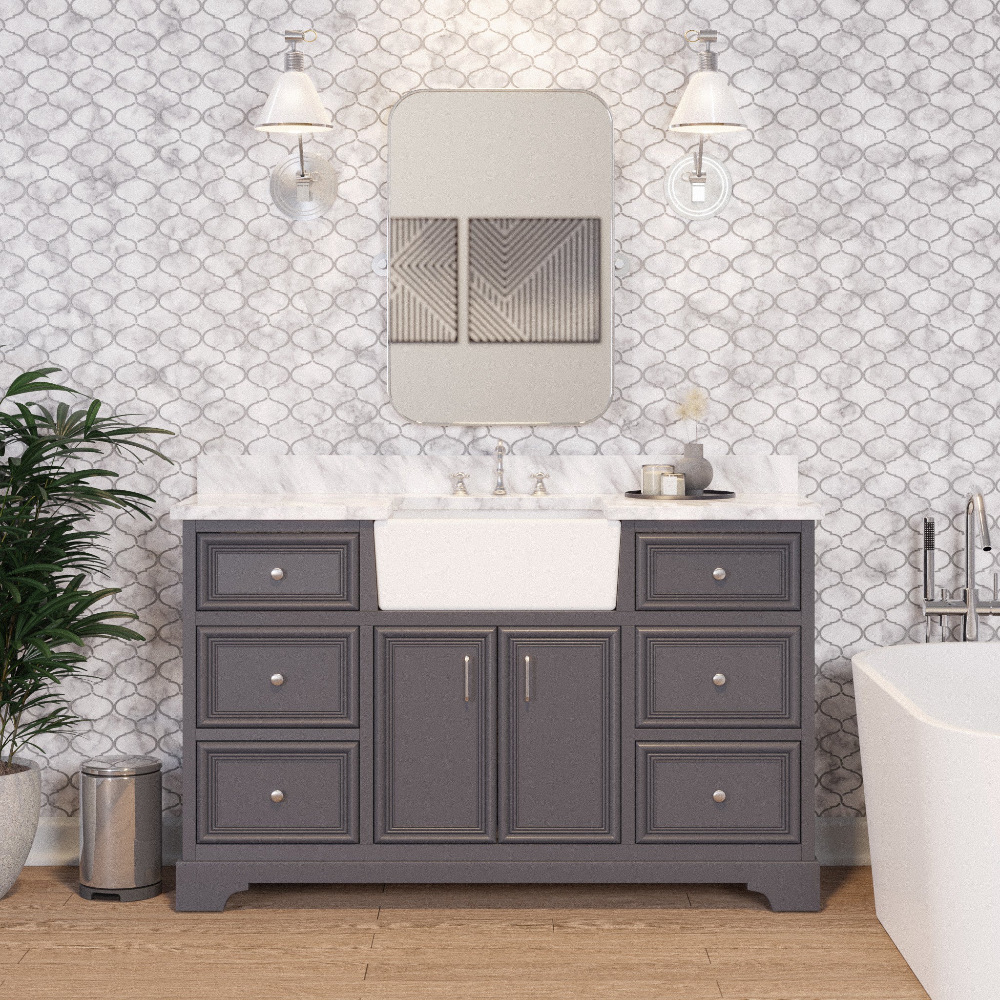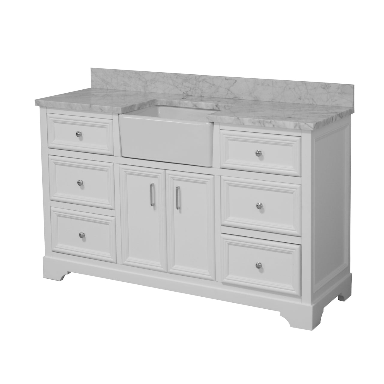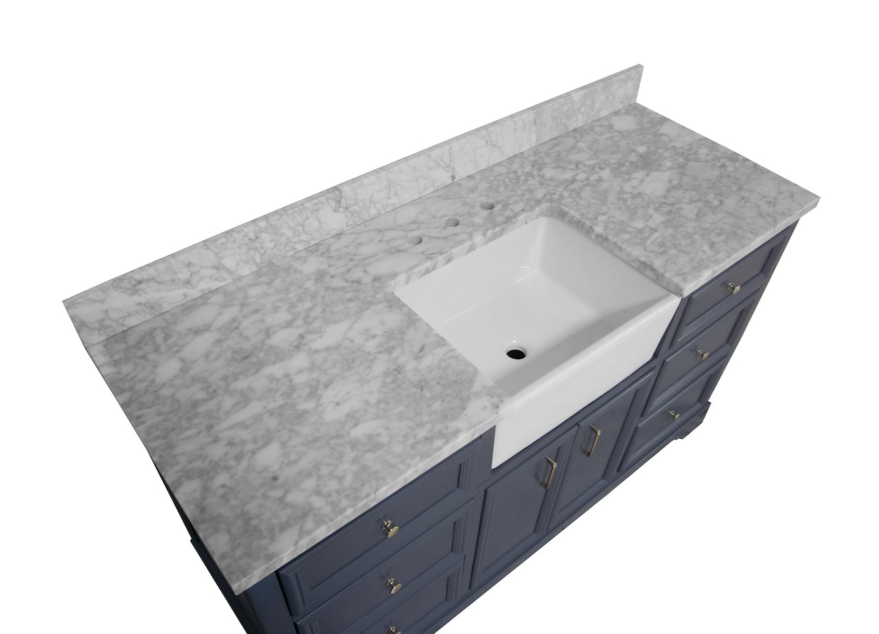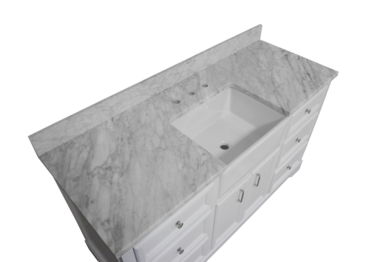 Zelda 60-inch Single Farmhouse Vanity with Carrara Marble Top