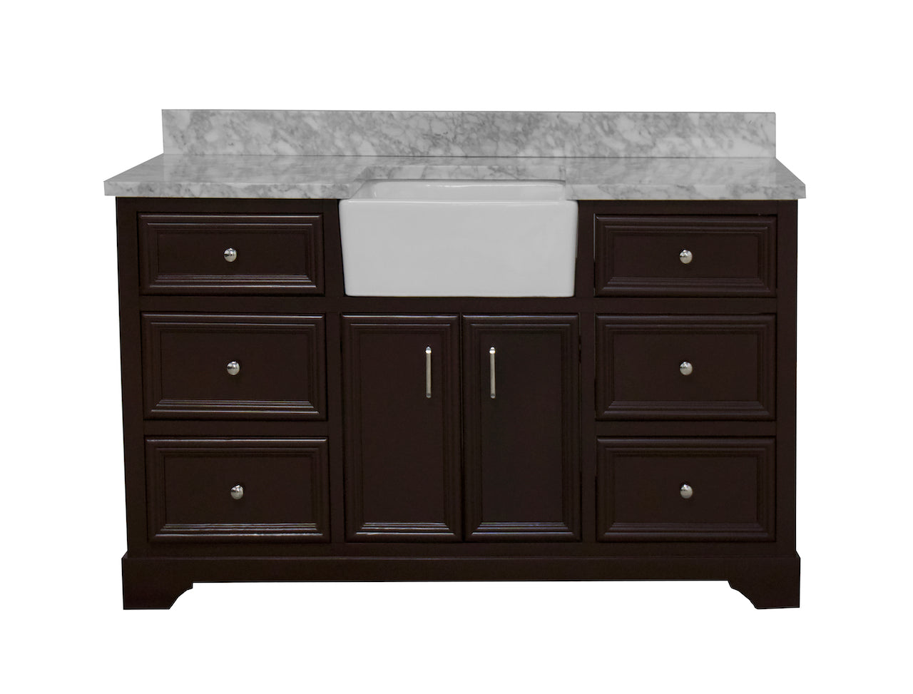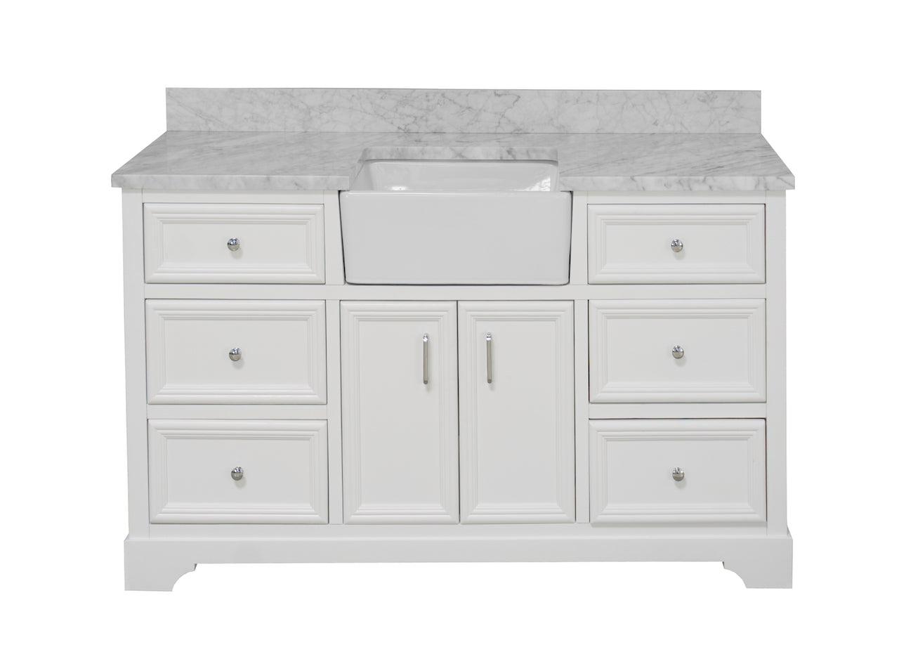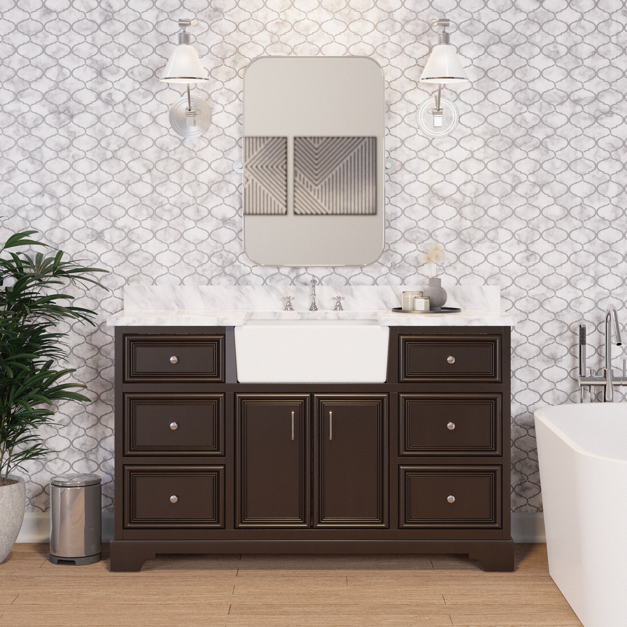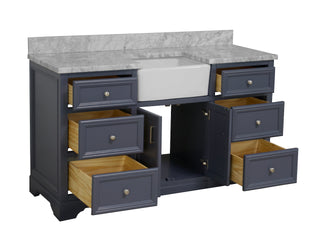 Zelda 60-inch Single Farmhouse Vanity with Carrara Marble Top