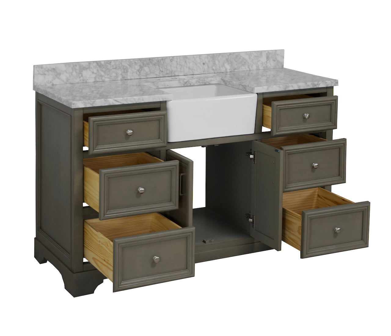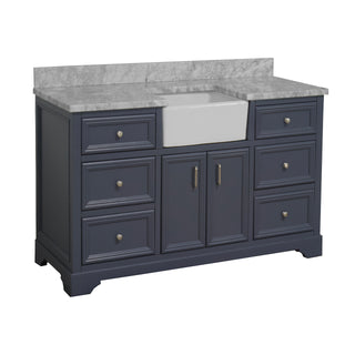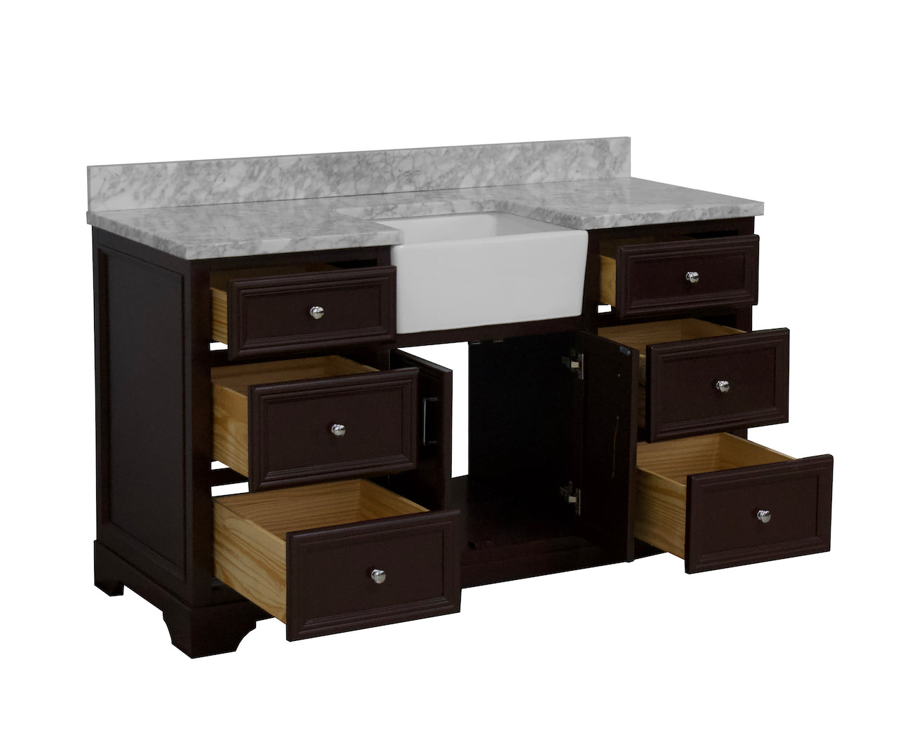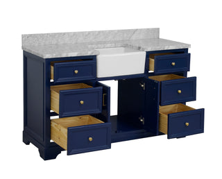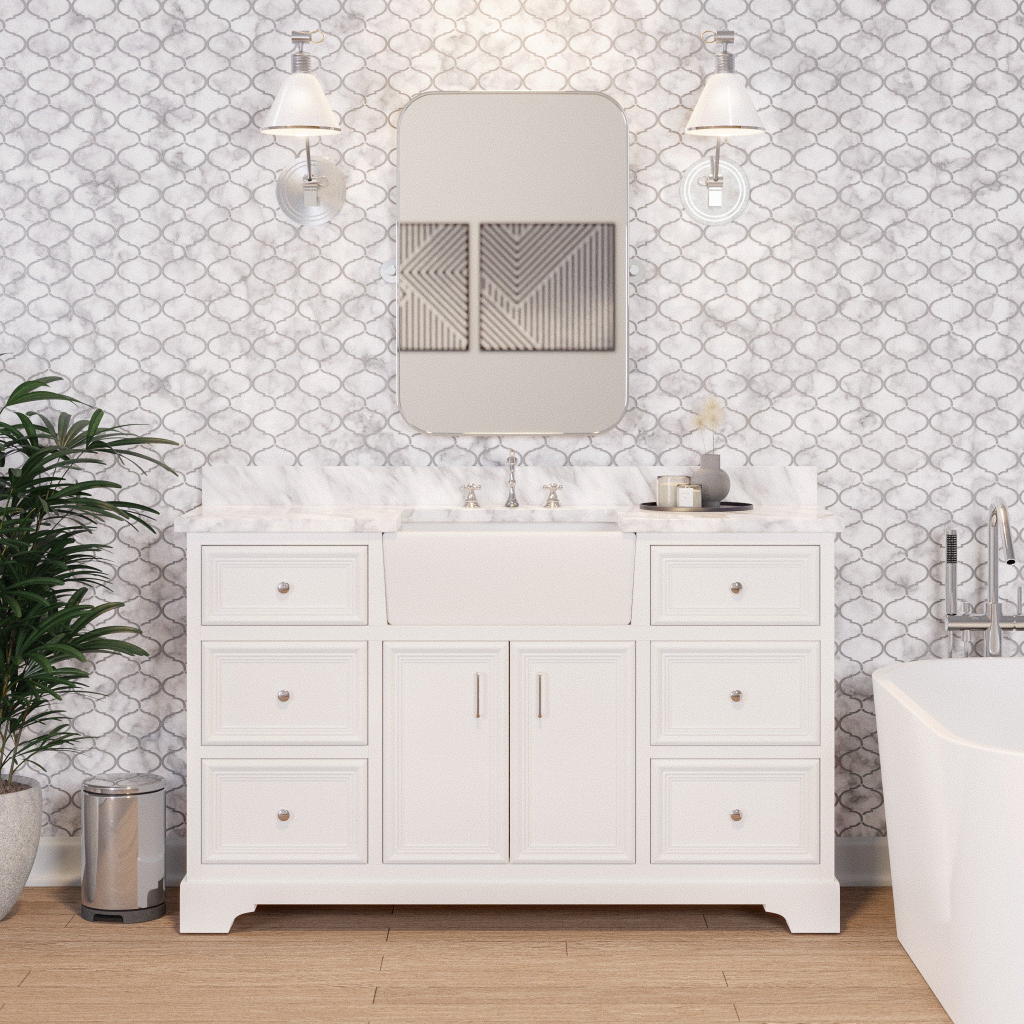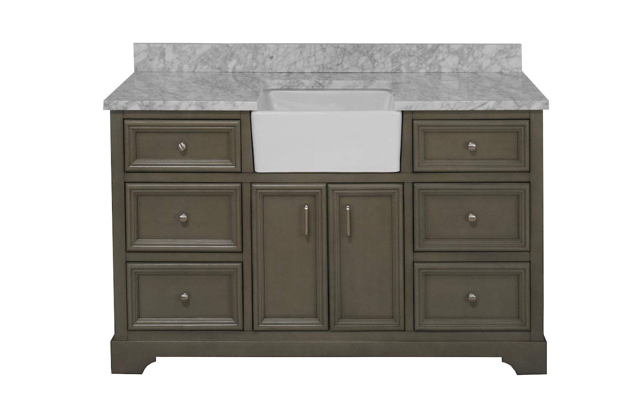 Zelda 60-inch Single Farmhouse Vanity with Carrara Marble Top