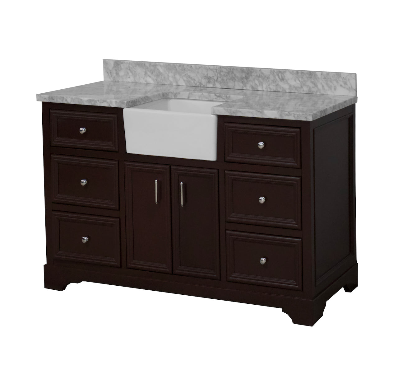 The Zelda: farmhouse style made magnificent. This double vanity is as functional as it is striking, with dual apron sinks and an easy-to-maintain quartz countertop.