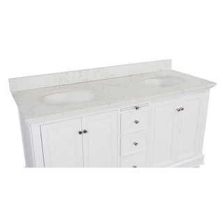 Faucet Requirement: Countertop is pre-drilled for two 8" widespread 2-handle faucets (not included)