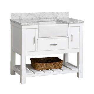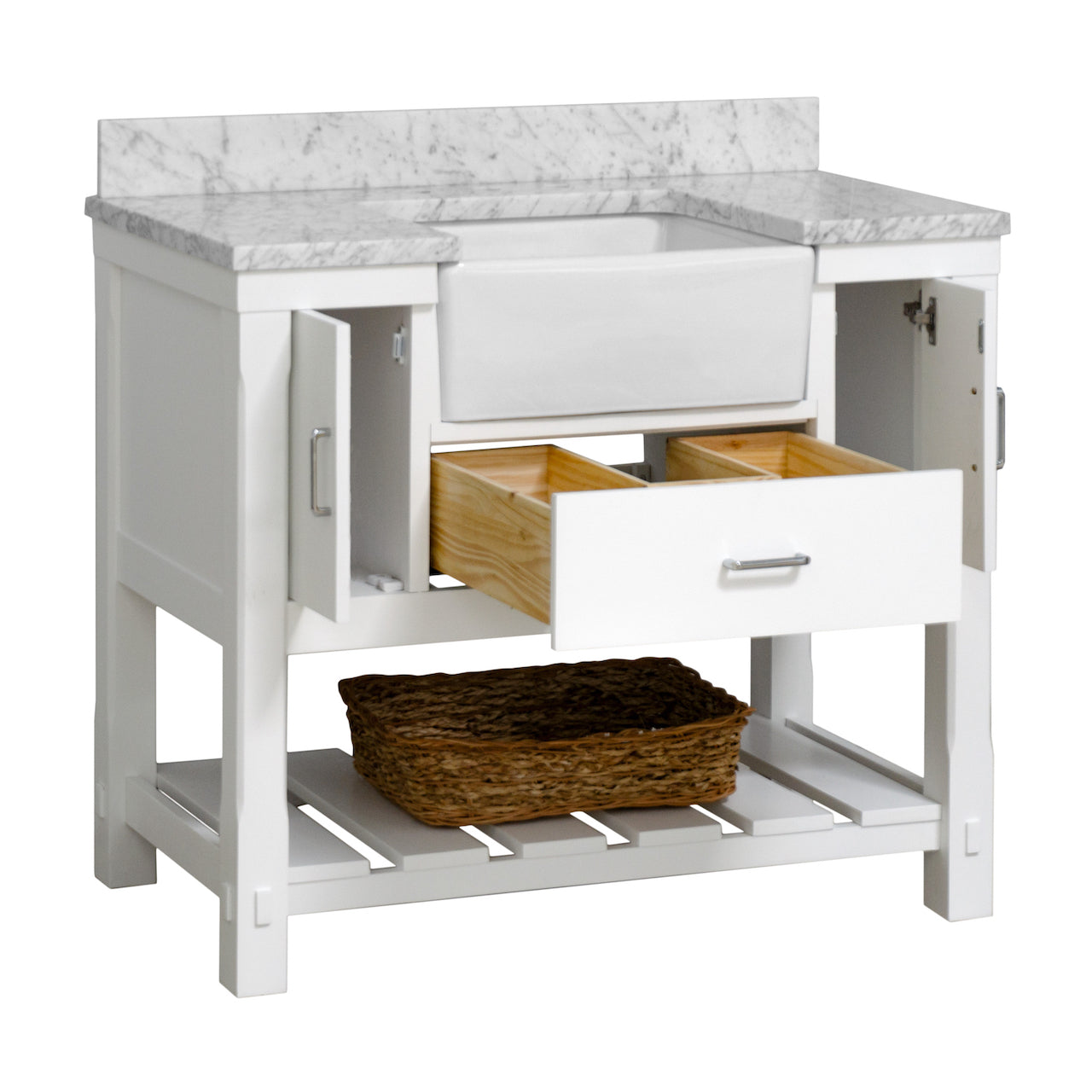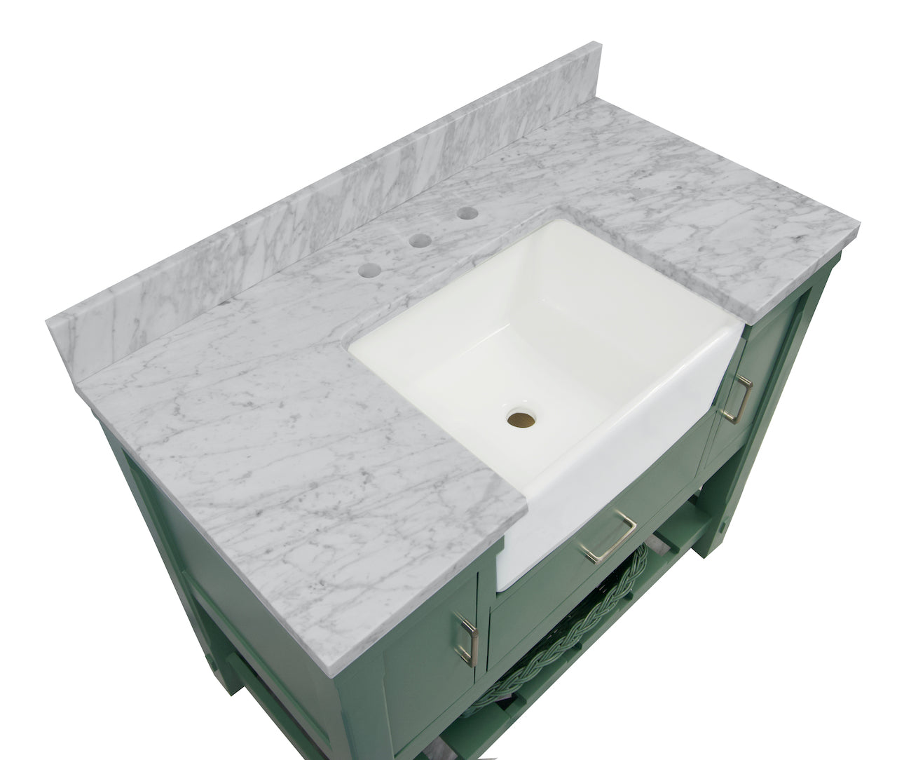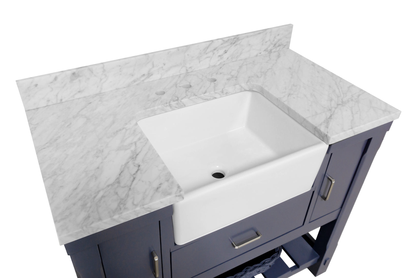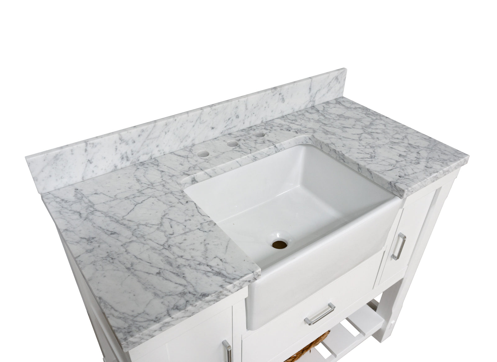 Faucet Requirement: Countertop is pre-drilled for one 8" widespread 2-handle faucet (not included)