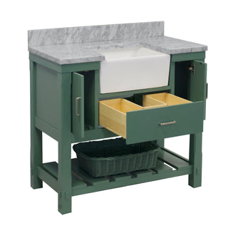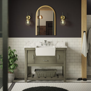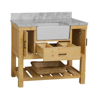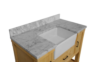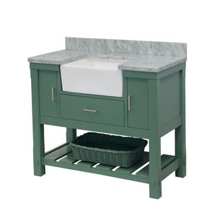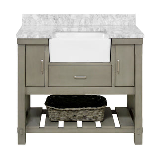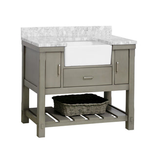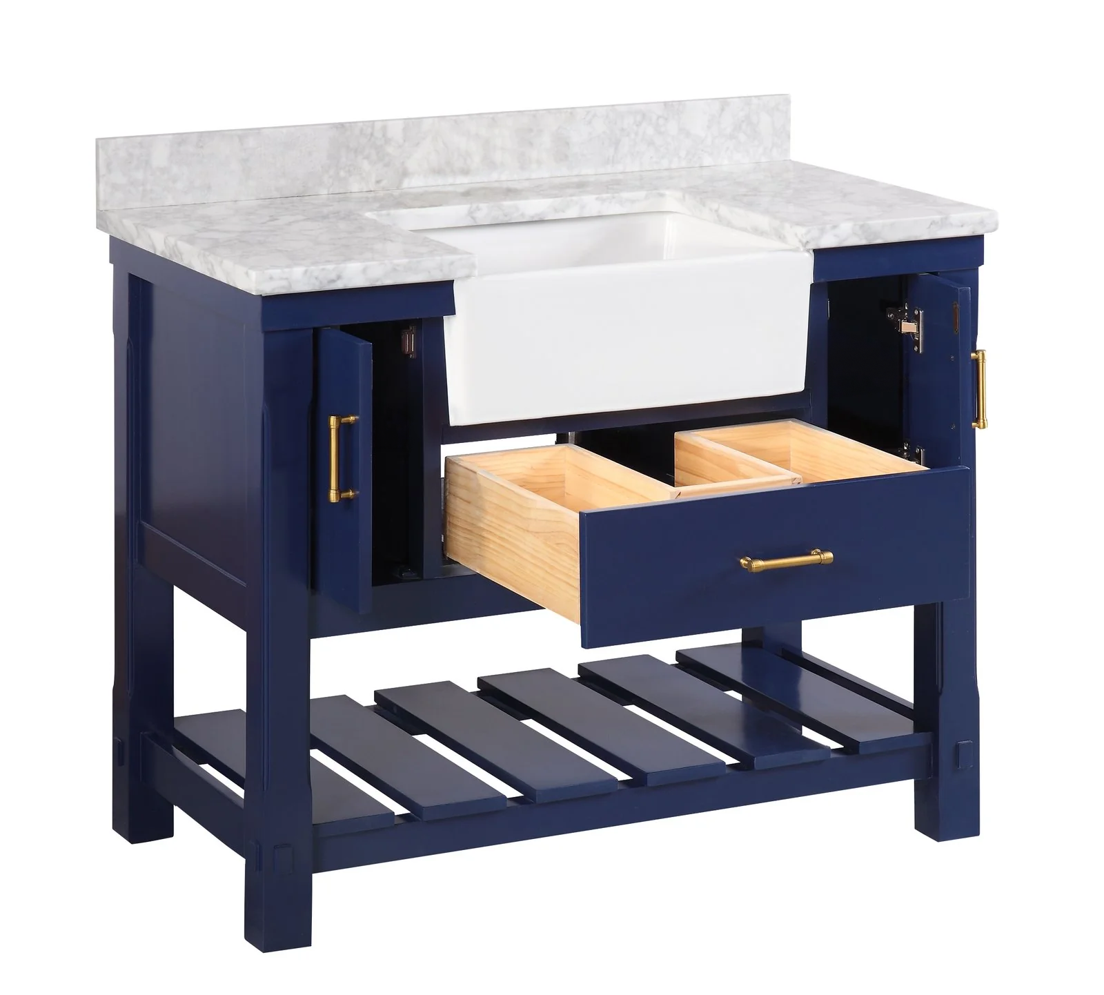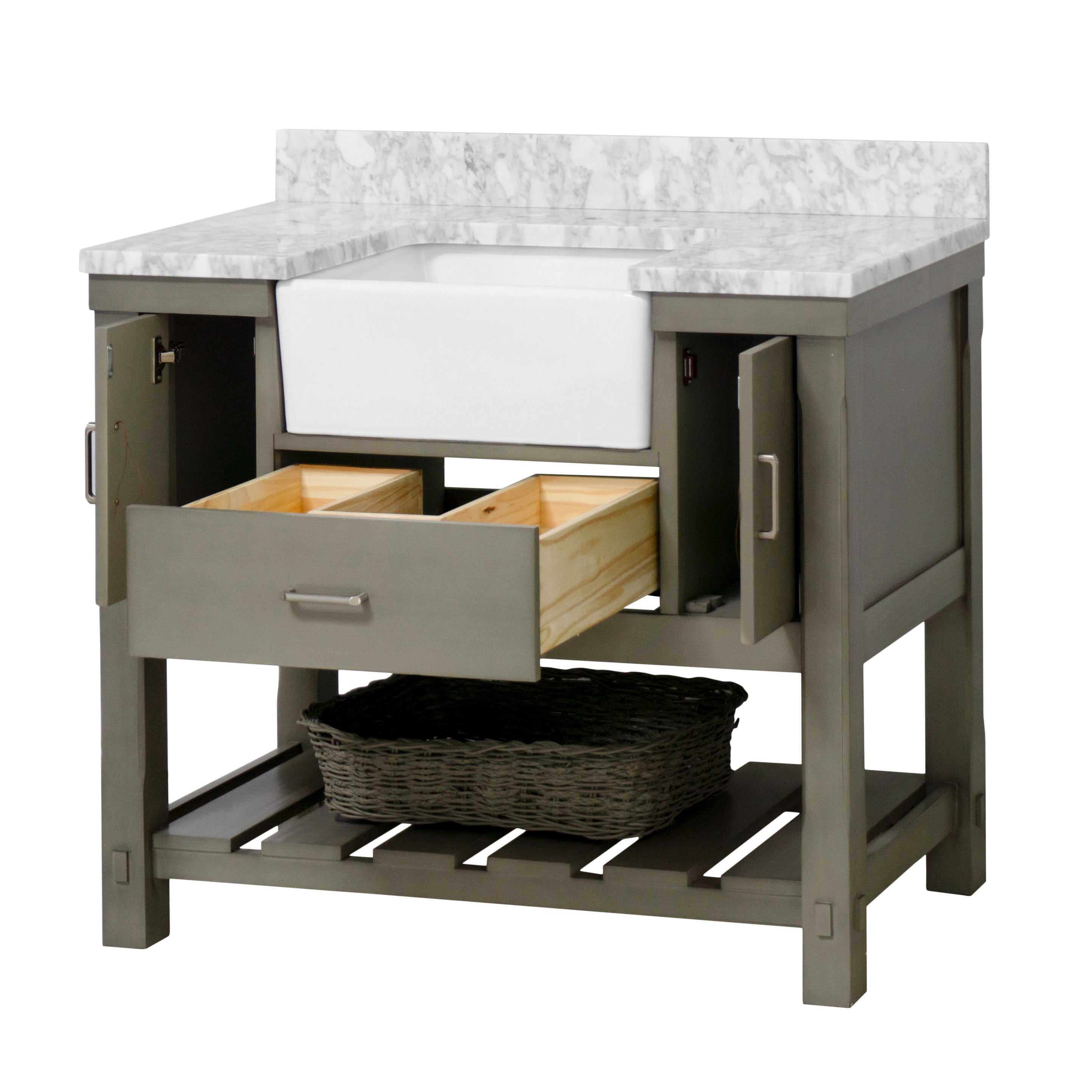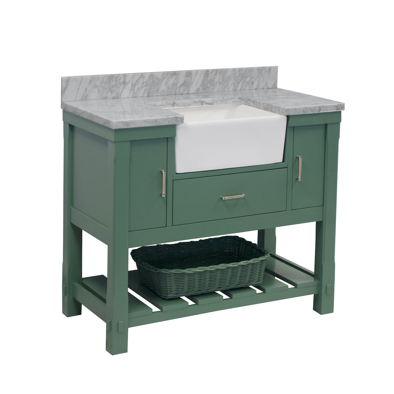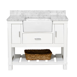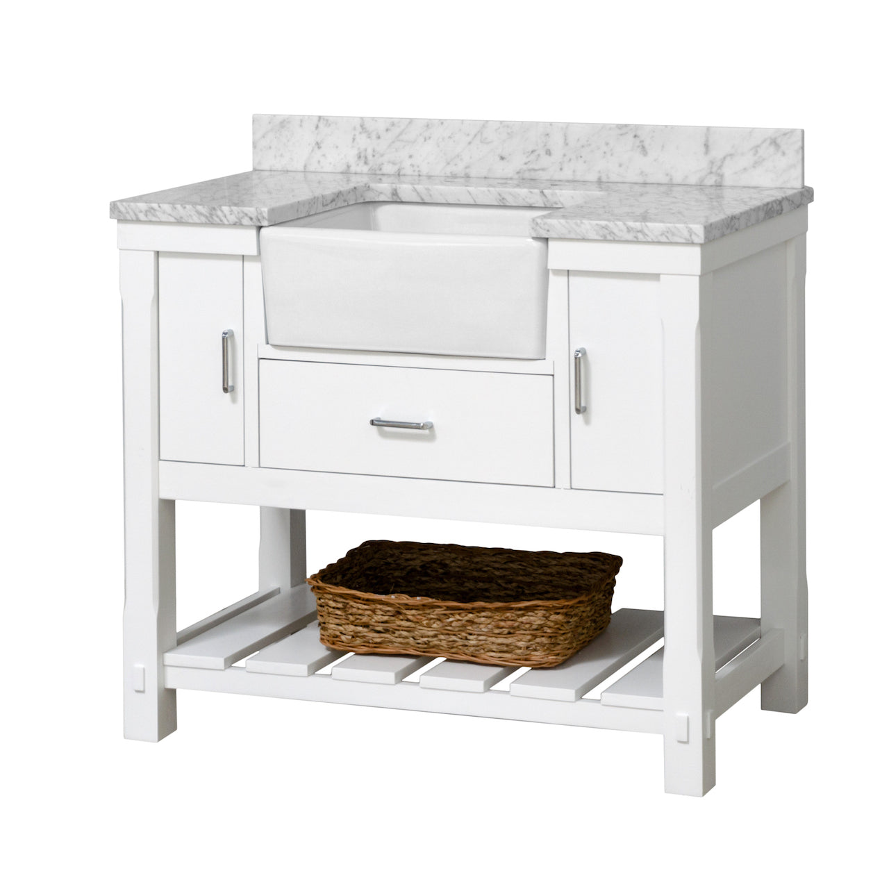 Faucet Requirement: Countertop is pre-drilled for one 8" widespread 2-handle faucet (not included)