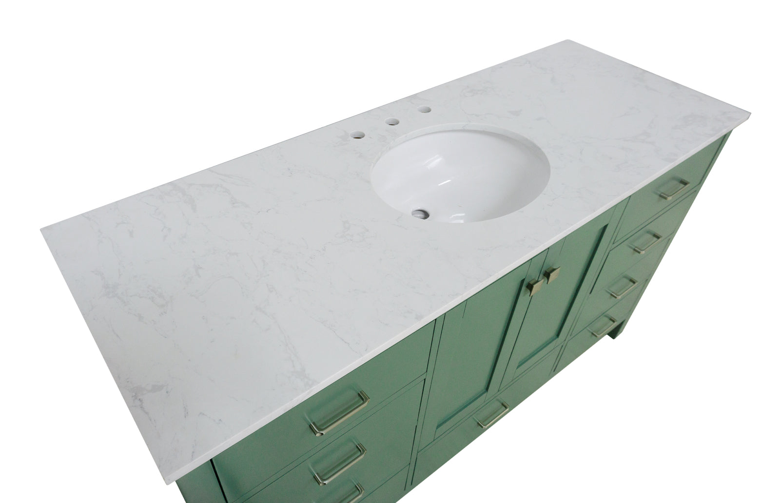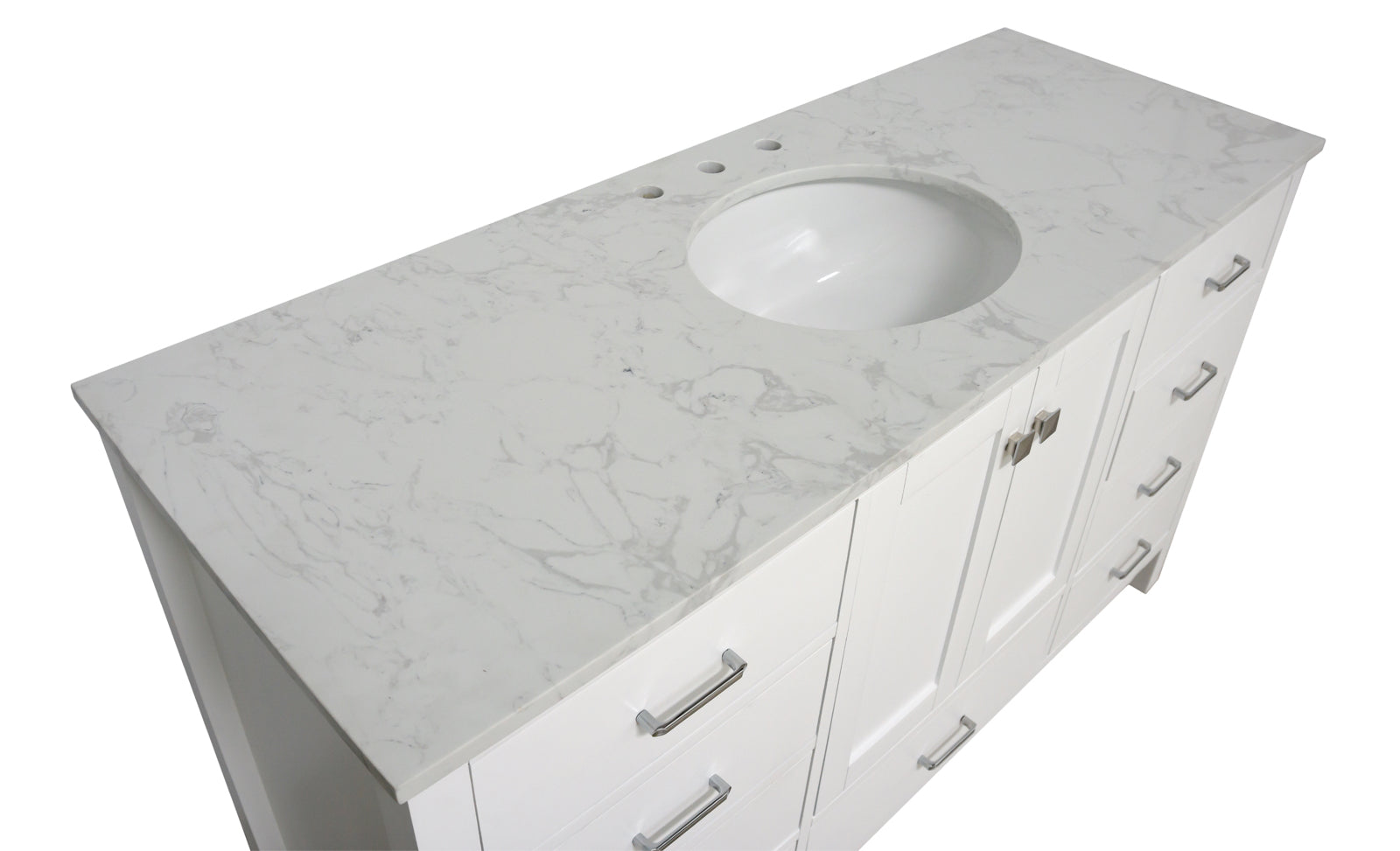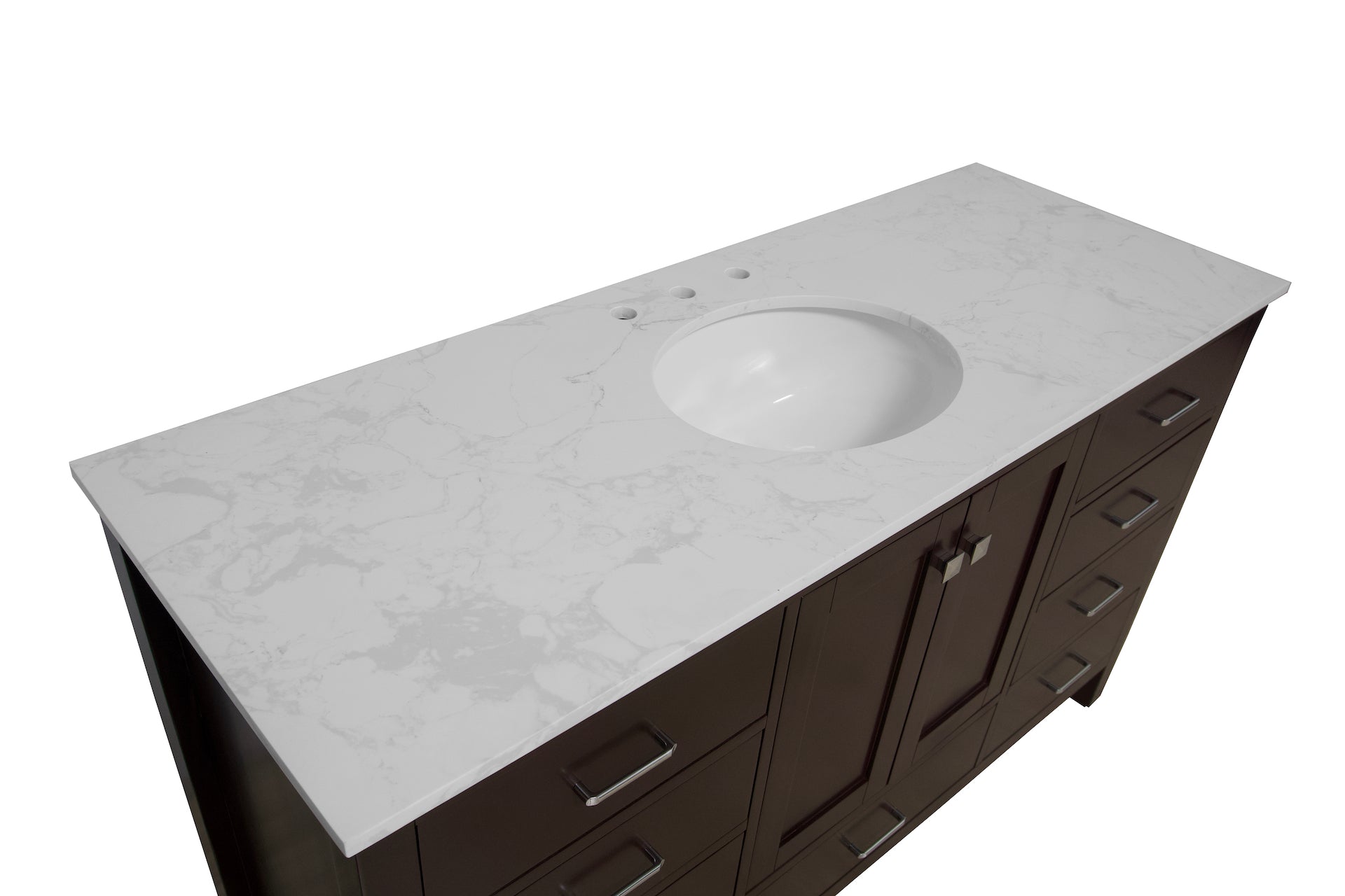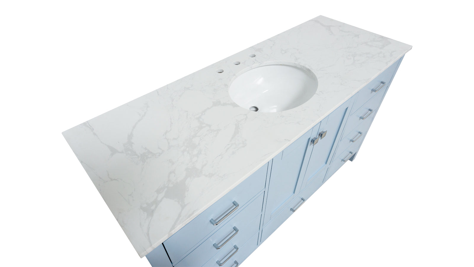 Faucet Requirement: Countertop is pre-drilled for one 8" widespread 2-handle faucet (not included)