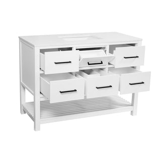 Premium Construction: Crafted with a combination of solid wood and engineered wood, this vanity boasts high-end, furniture-grade construction for lasting durability.
