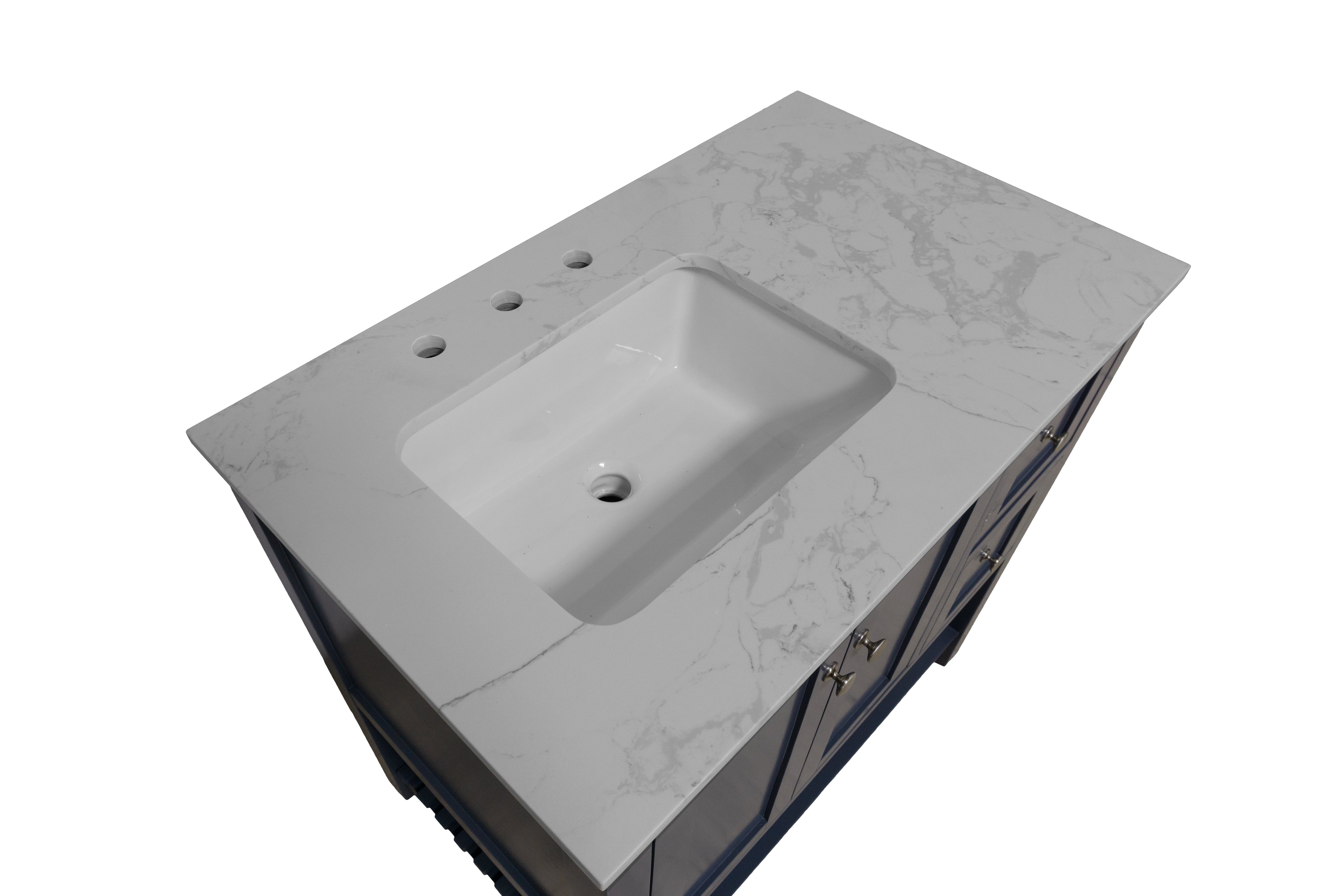 Faucet Requirement: Countertop is pre-drilled for one 8" widespread 2-handle faucet (not included)