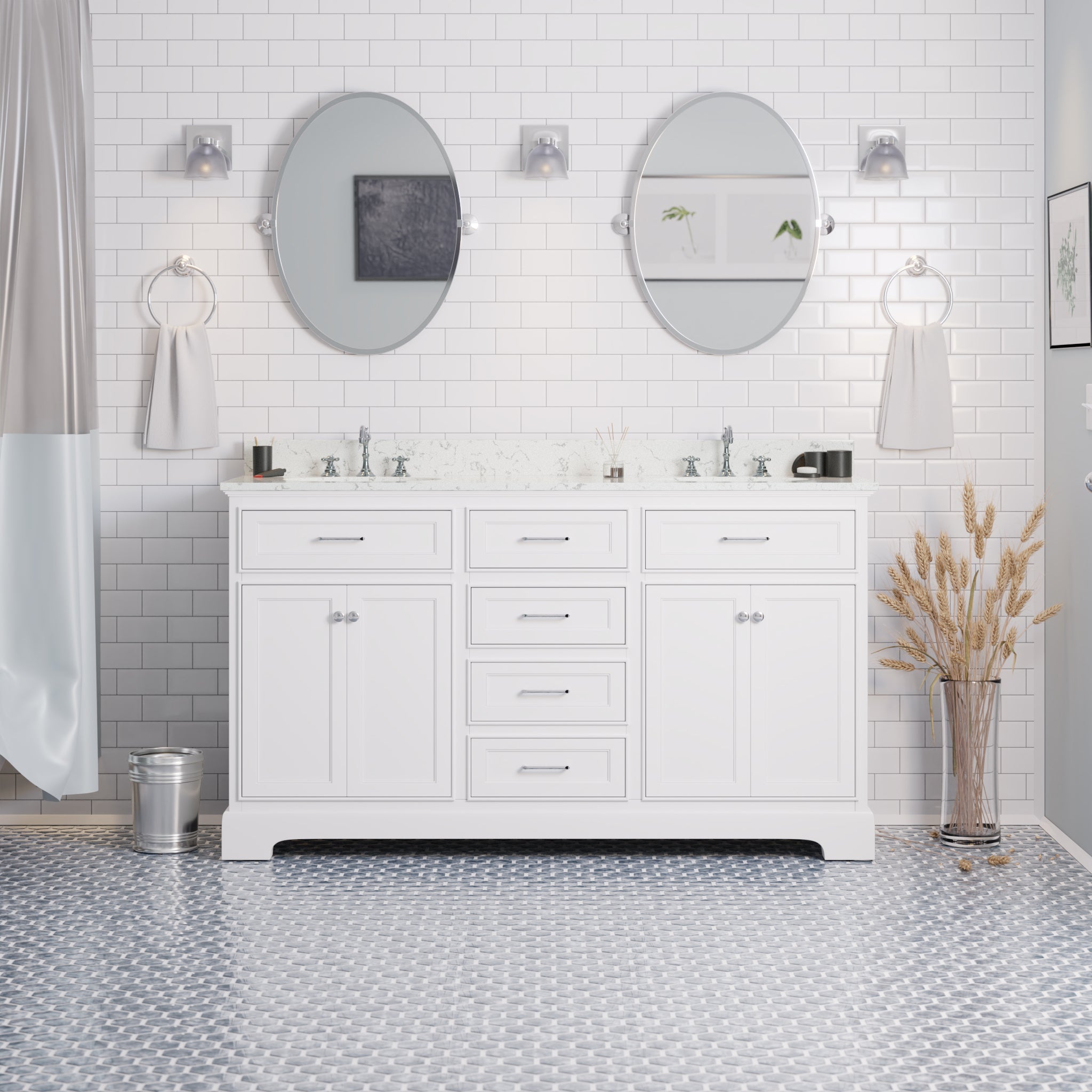 Aria 60-inch Double Vanity with Engineered Marble Top