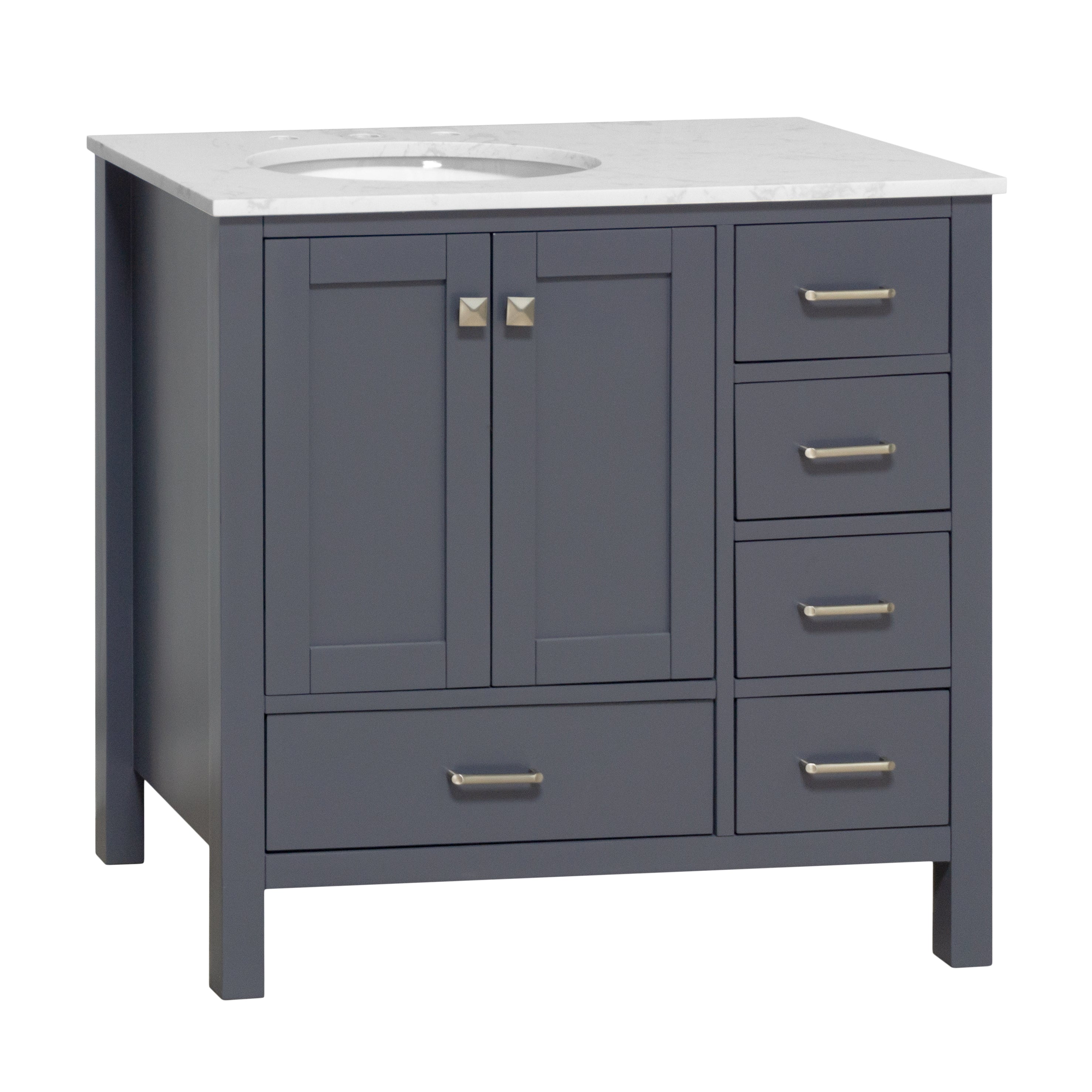 Hardware Finish: White, Chocolate & Powder Blue Cabinets - Polished Chrome. Marine Gray, Weathered Gray & Sage Green Cabinets - Brushed Nickel. Royal Blue Cabinet - Gold.