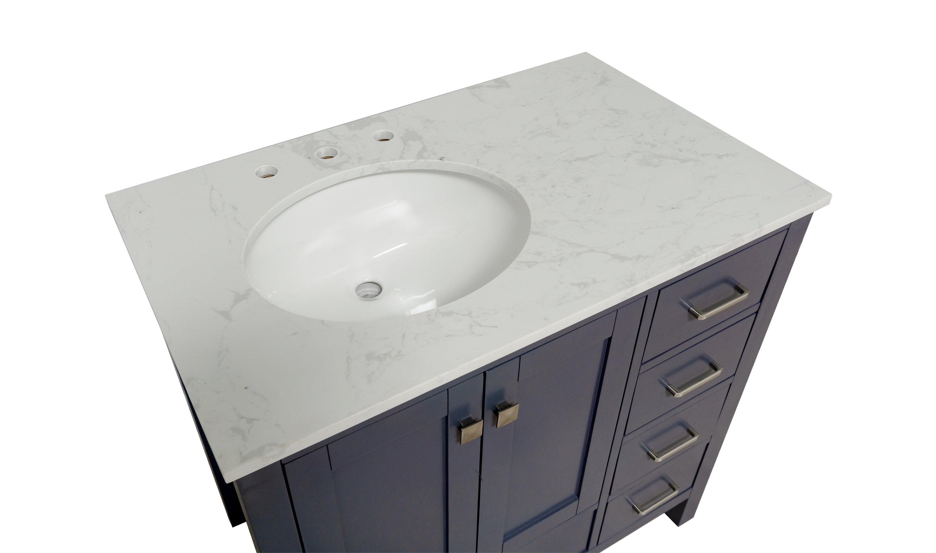 Faucet Requirement: Countertop is pre-drilled for one 8" widespread 2-handle faucet (not included)