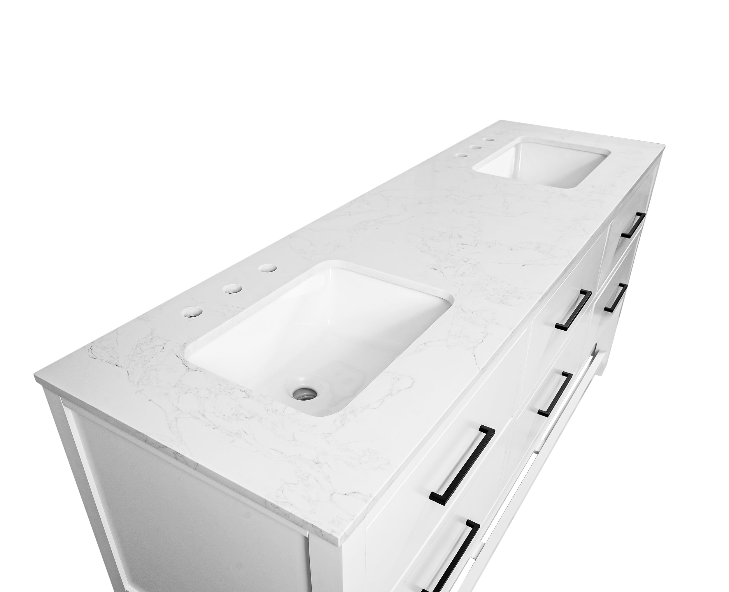 Elegant Countertop: The engineered marble countertop, pre-installed on the cabinet, showcases stunning veining that mimics the look of authentic marble. It’s not only beautiful but also resilient and easy to maintain.