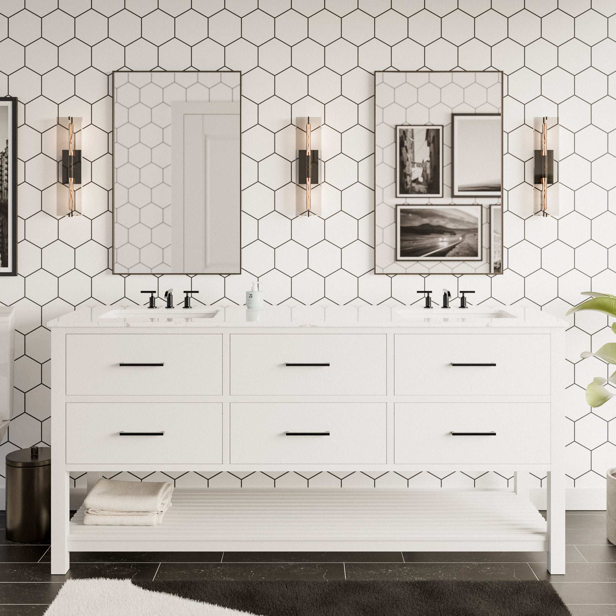 Premium Construction: Crafted with a combination of solid wood and engineered wood, this vanity boasts high-end, furniture-grade construction for lasting durability.