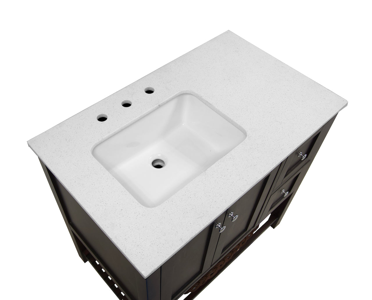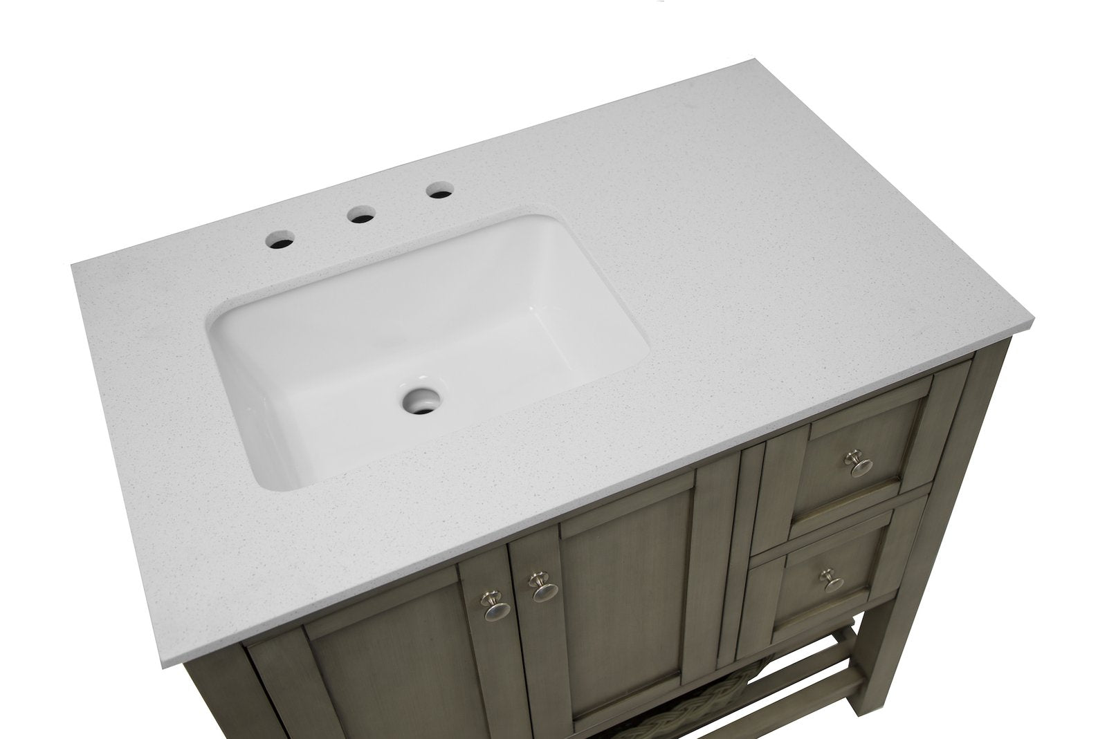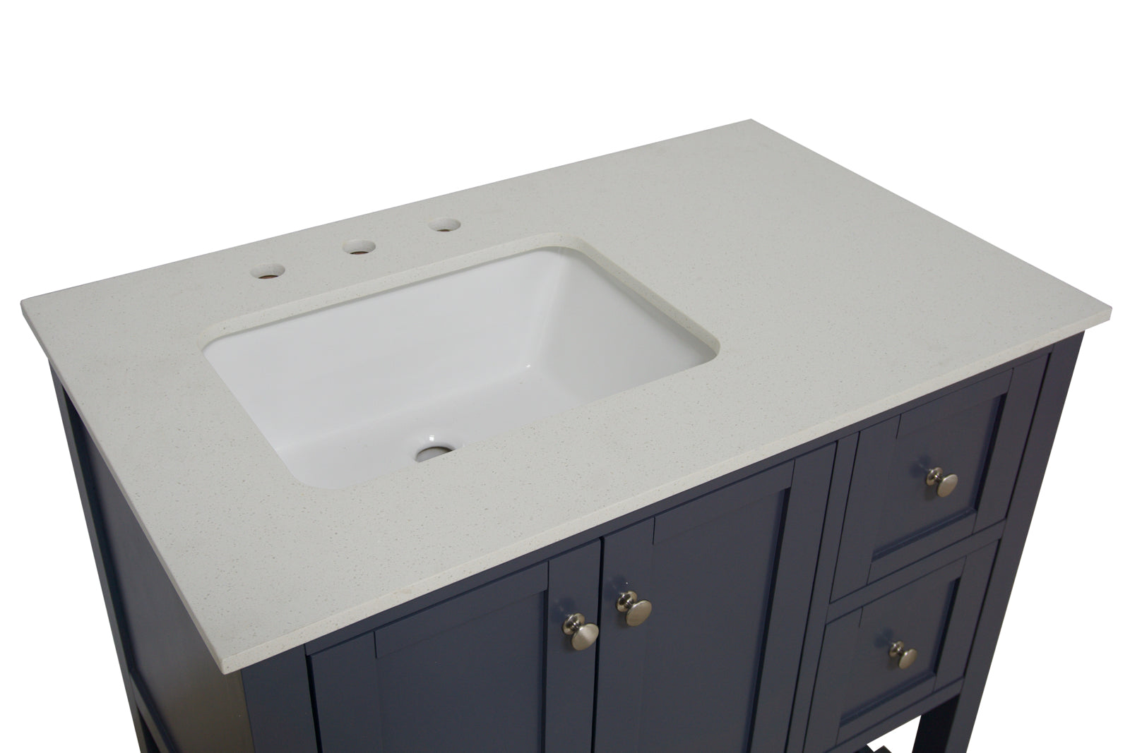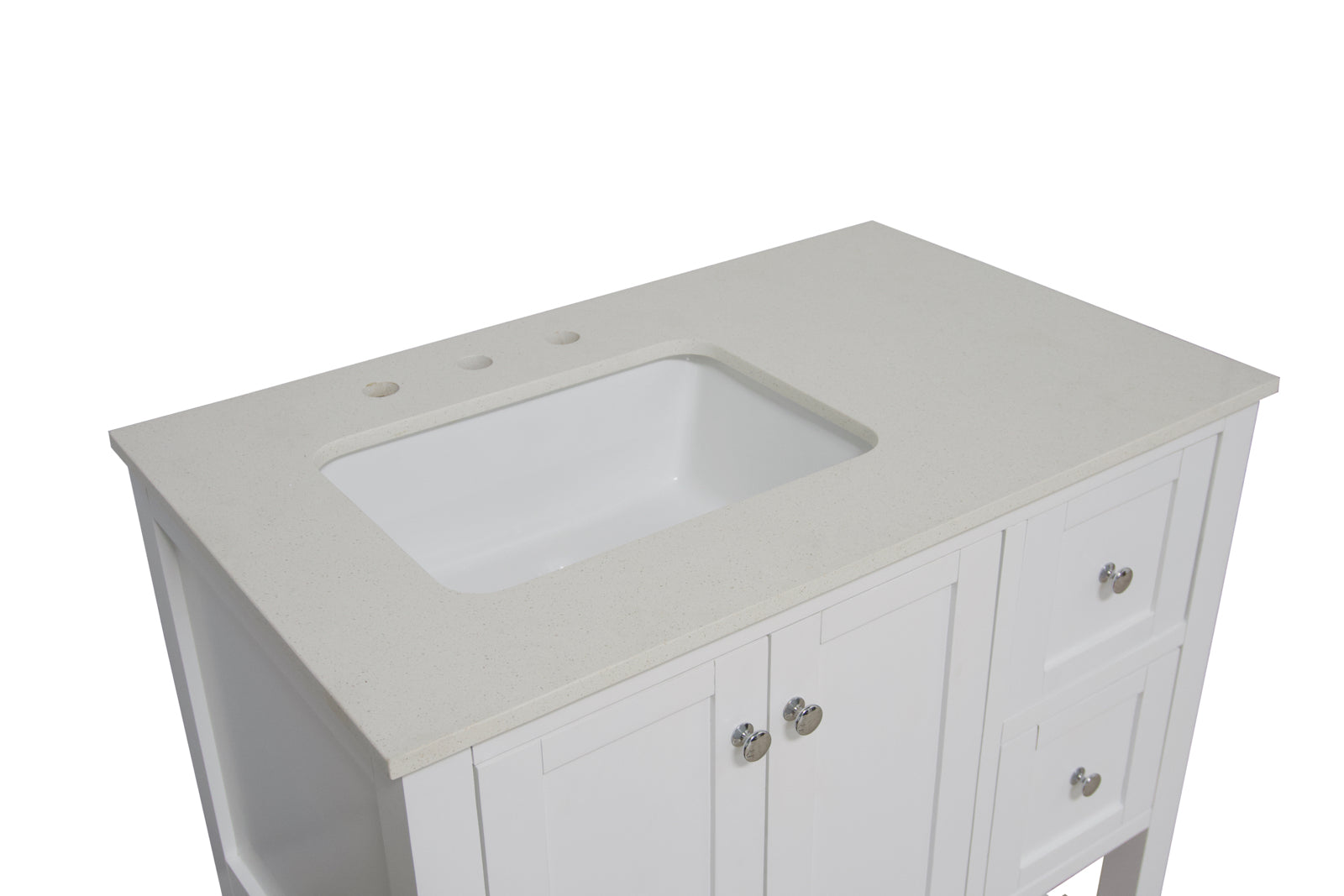 Faucet Requirement: Countertop is pre-drilled for one 8" widespread 2-handle faucet (not included)