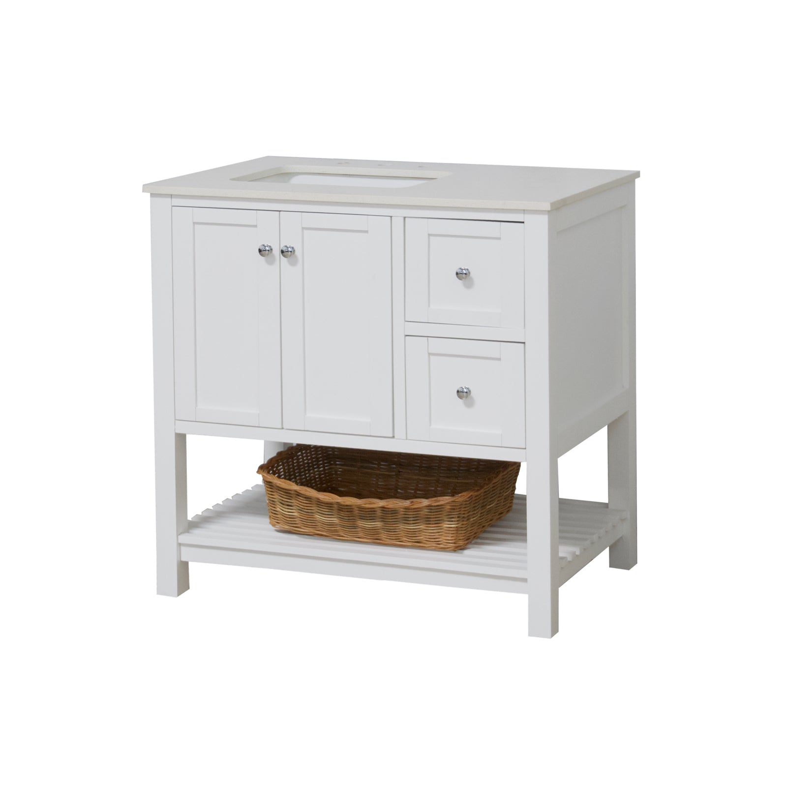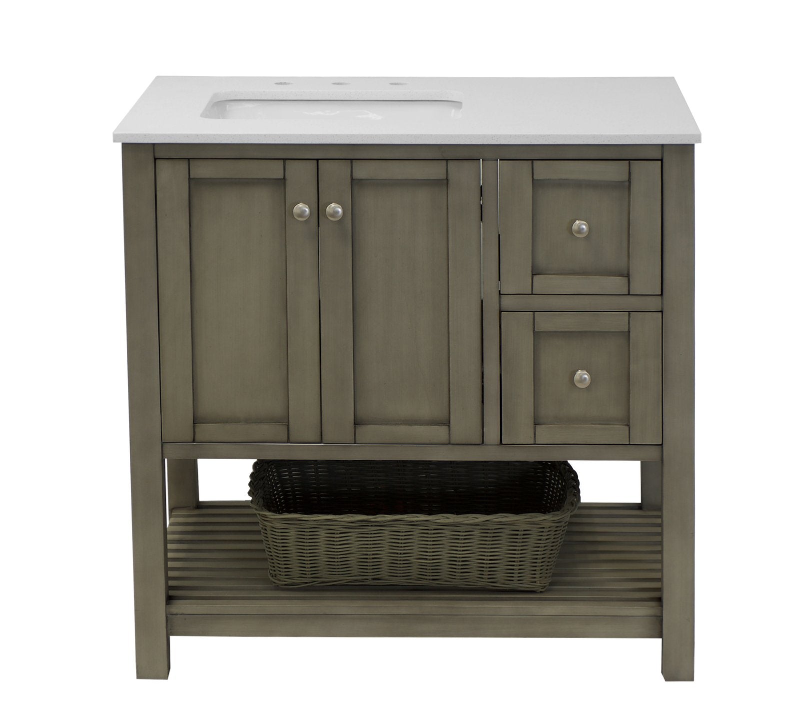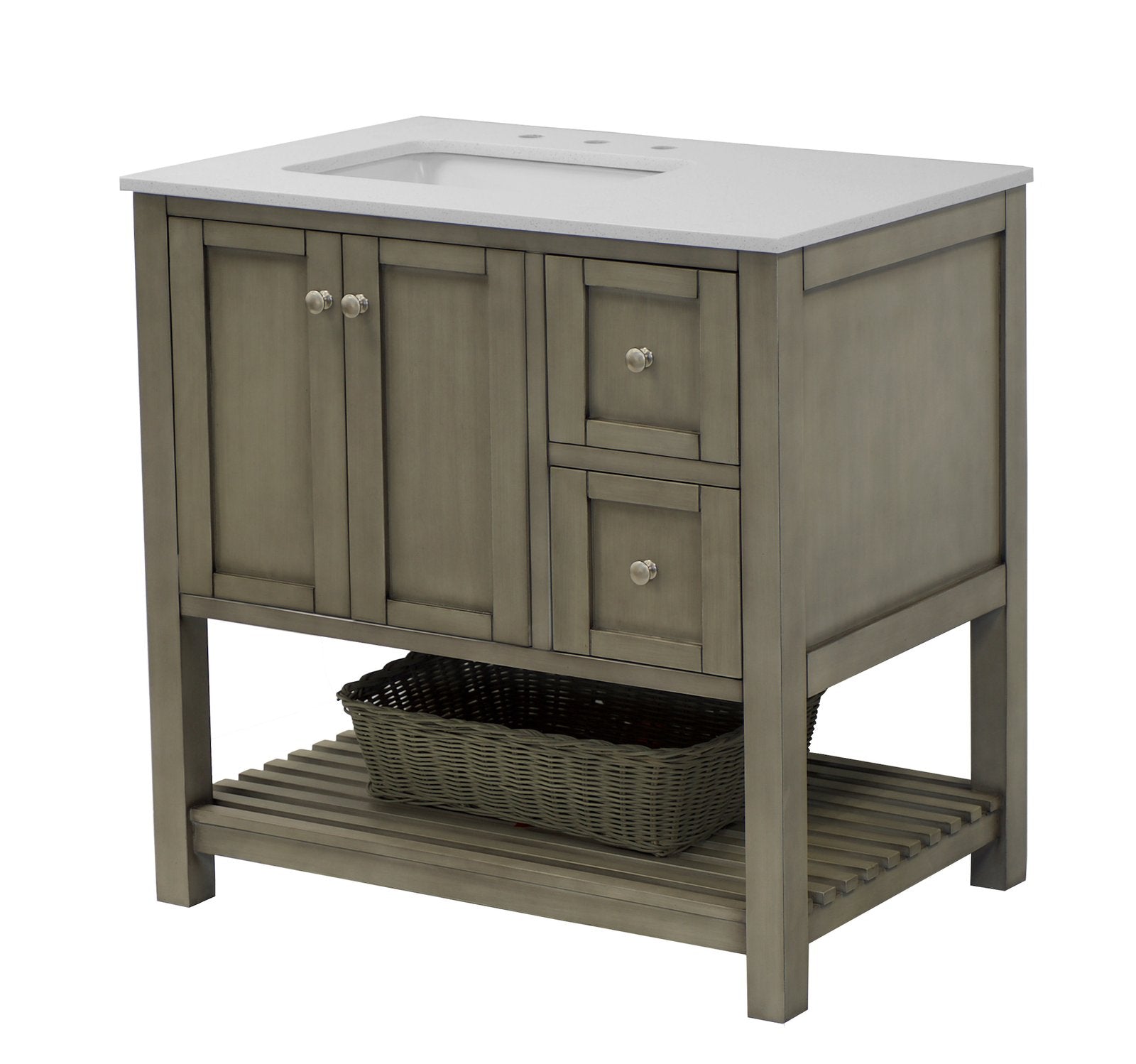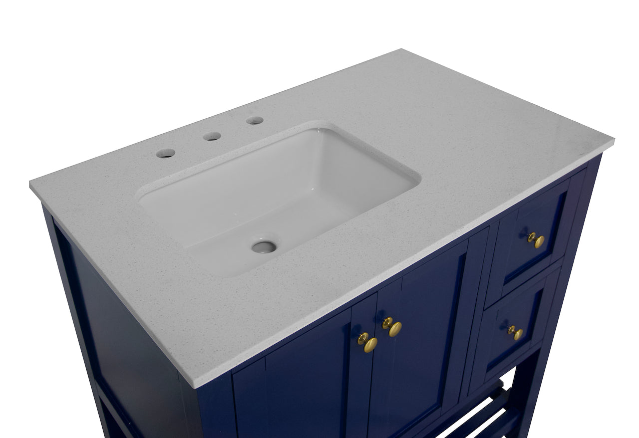 Faucet Requirement: Countertop is pre-drilled for one 8" widespread 2-handle faucet (not included)