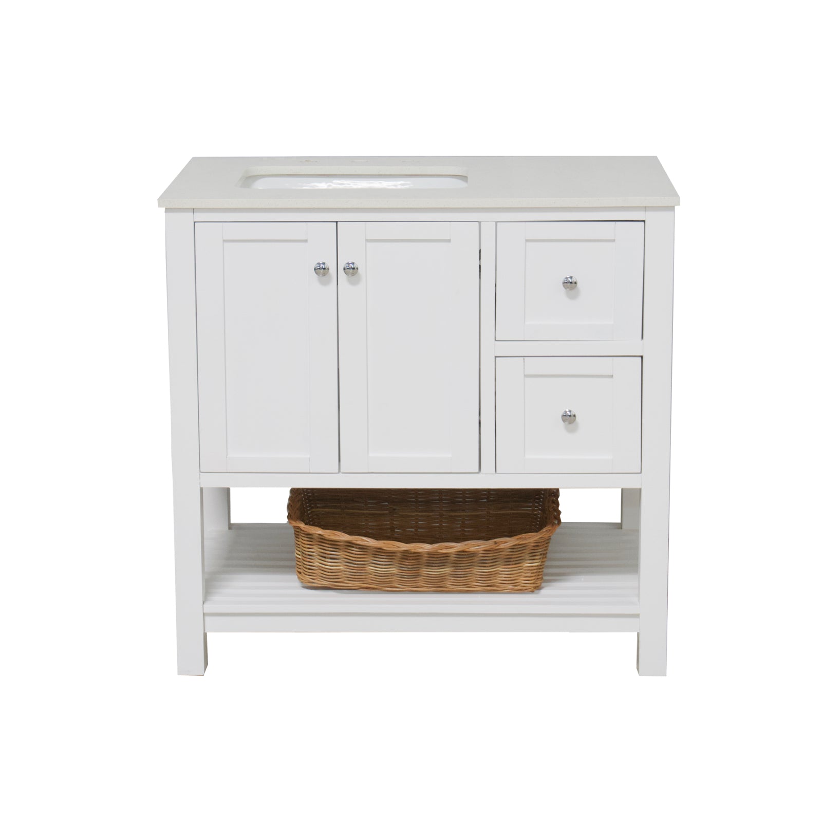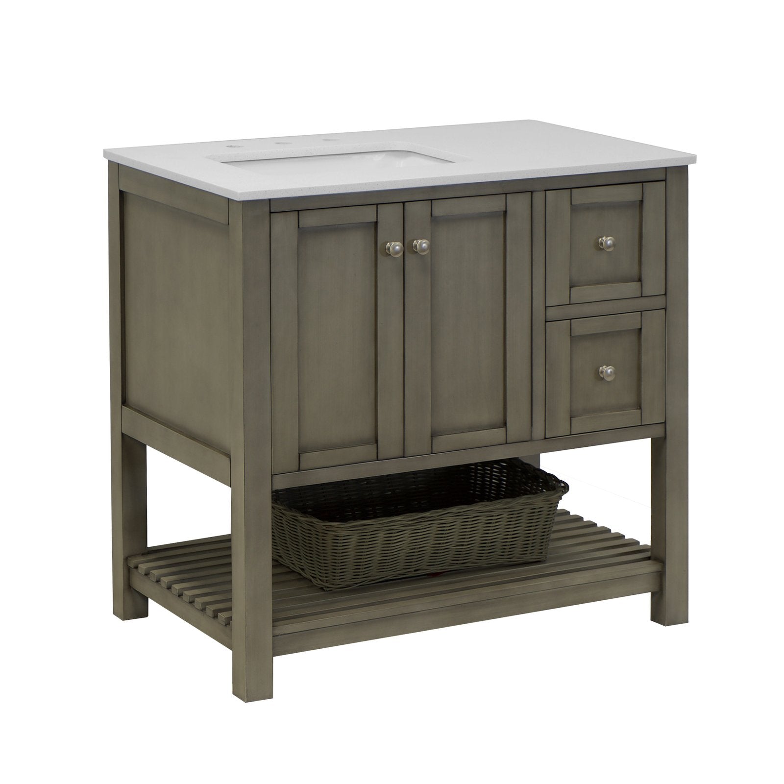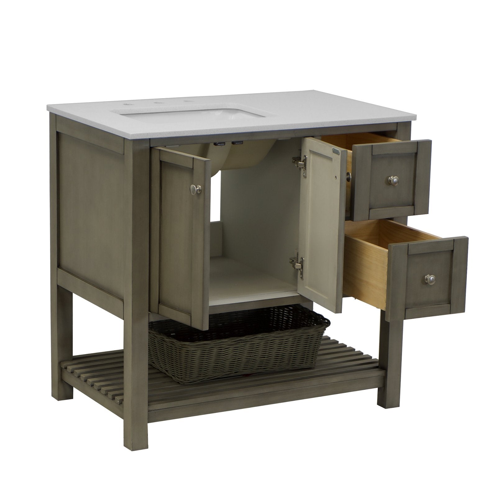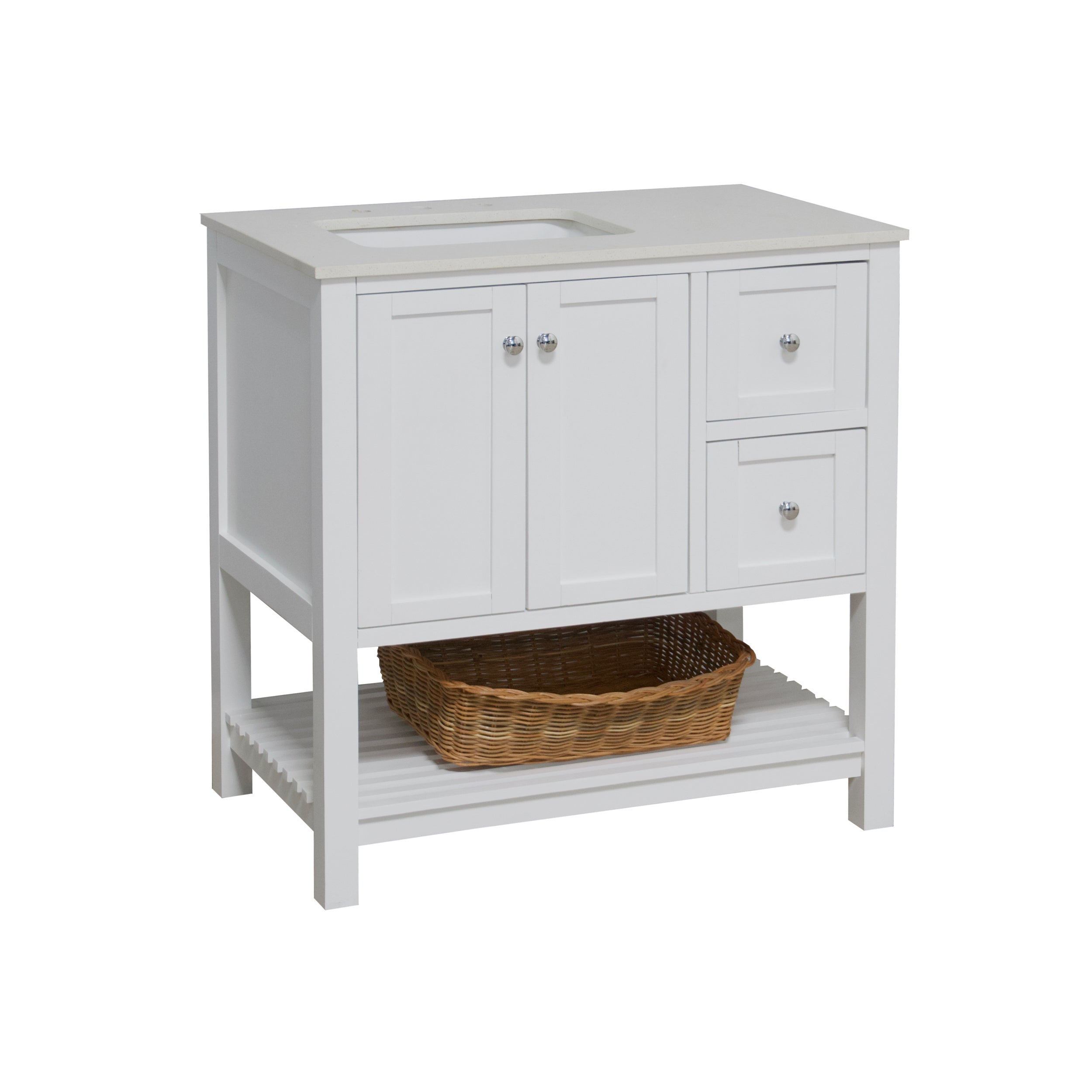 Faucet Requirement: Countertop is pre-drilled for one 8" widespread 2-handle faucet (not included)