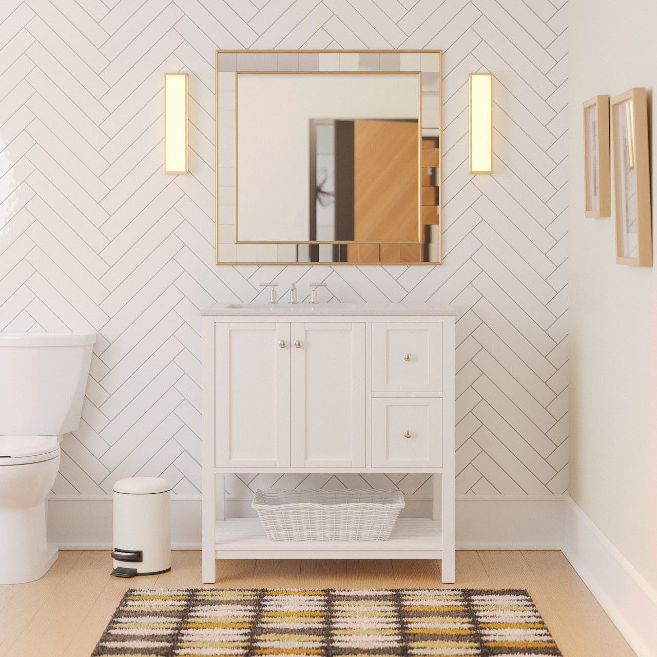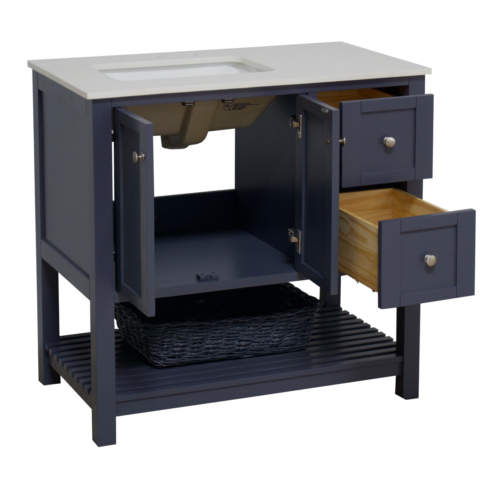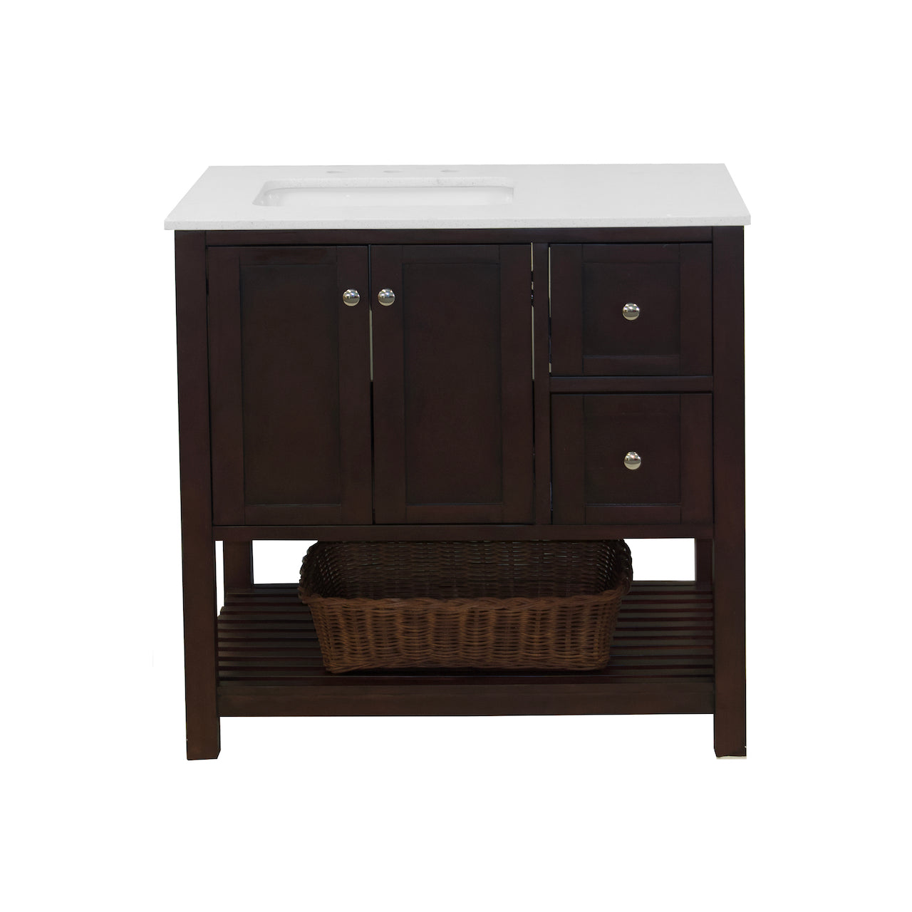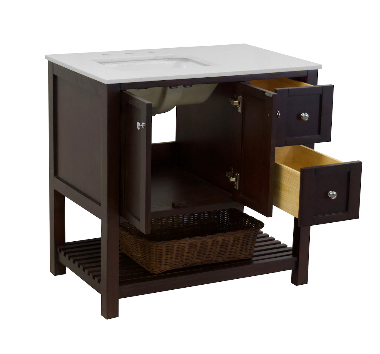 Faucet Requirement: Countertop is pre-drilled for one 8" widespread 2-handle faucet (not included)