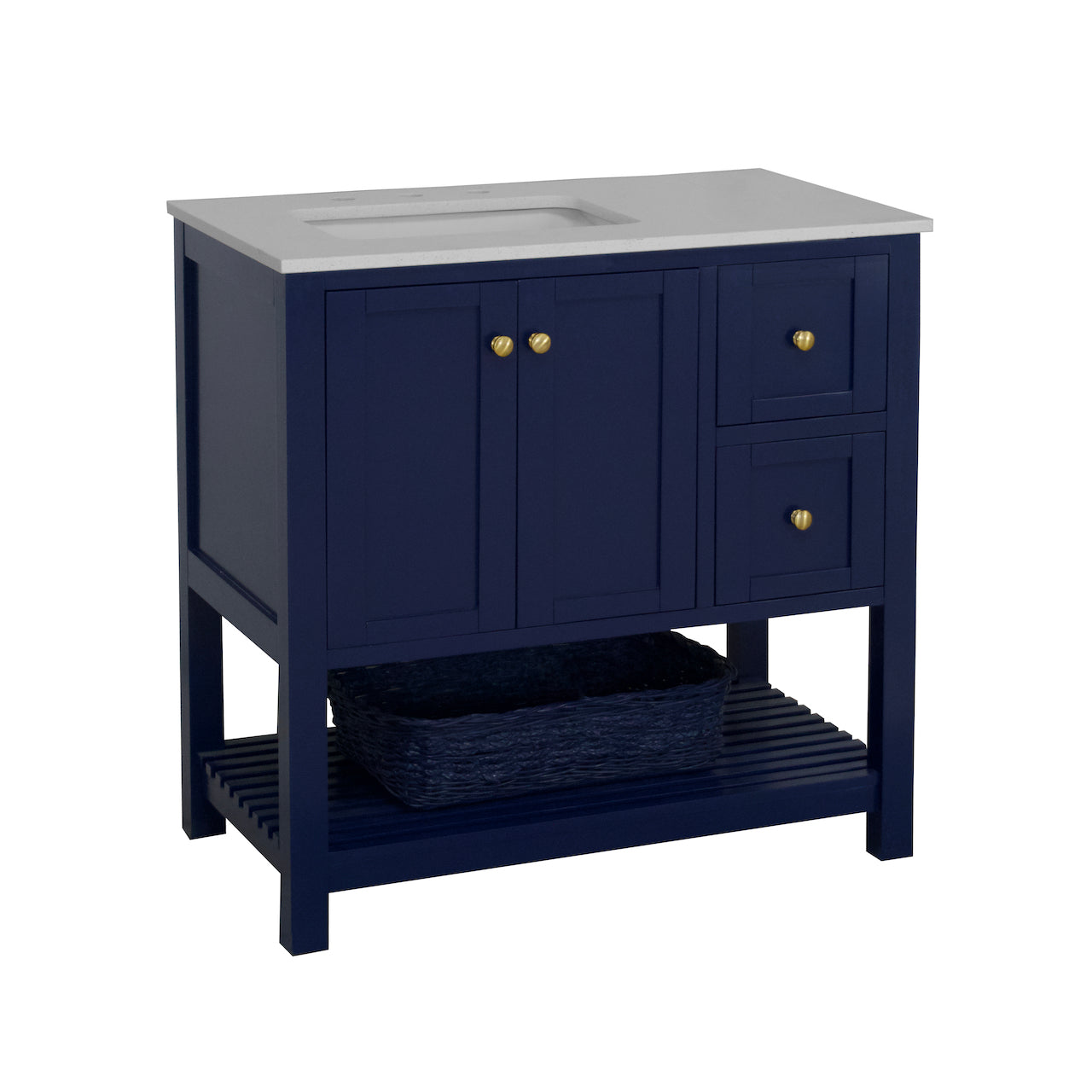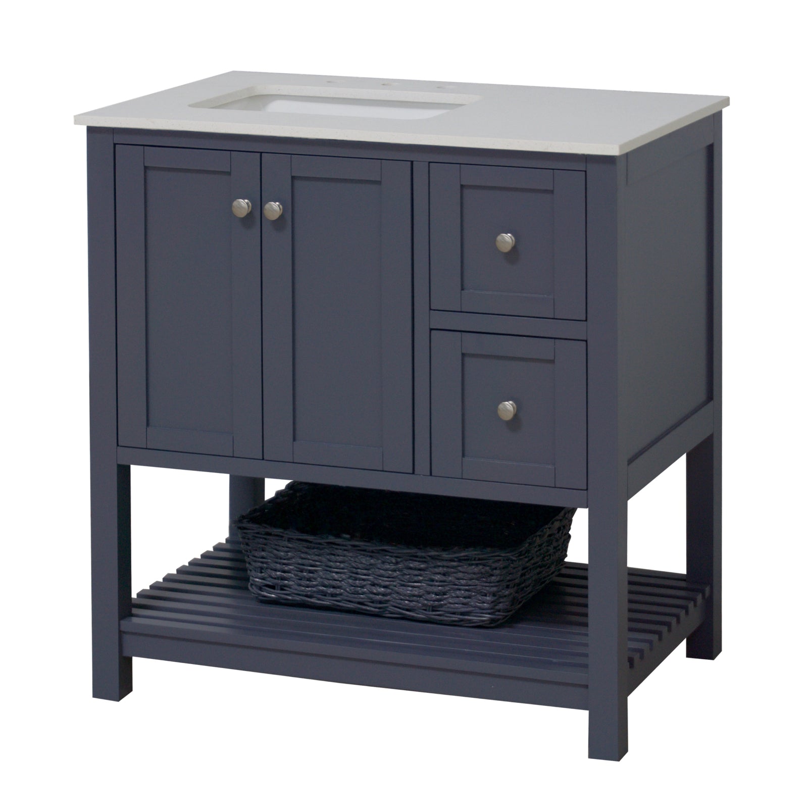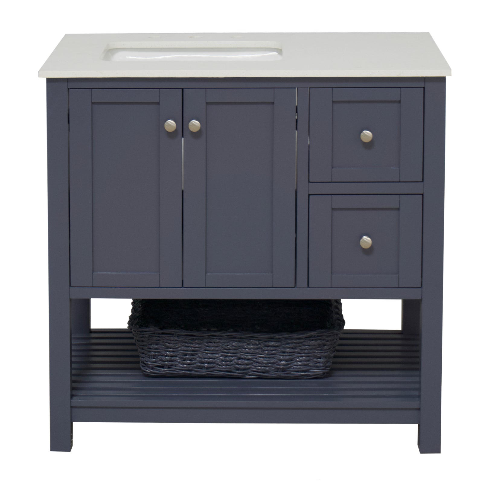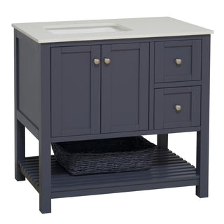 Hardware Finish: White & Chocolate Cabinets - Polished Chrome. Weathered Gray & Marine Gray Cabinets - Brushed Nickel. Royal Blue Cabinet - Gold.