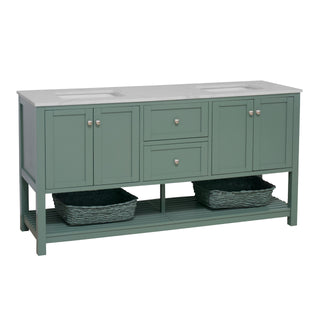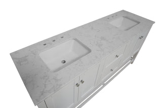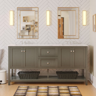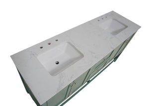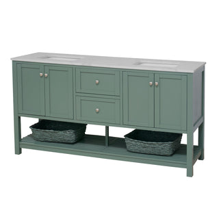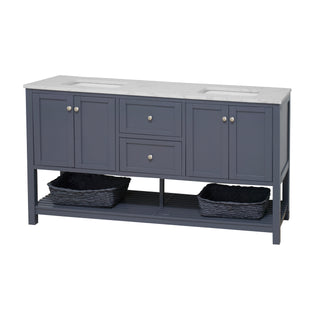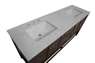 Faucet Requirement: Countertop is pre-drilled for two 8" widespread 2-handle faucets (not included)
