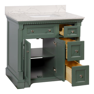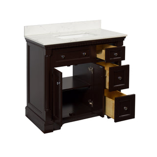 • Premium Construction: Crafted with a combination of solid wood and engineered wood, this vanity boasts high-end, furniture-grade construction for lasting durability.