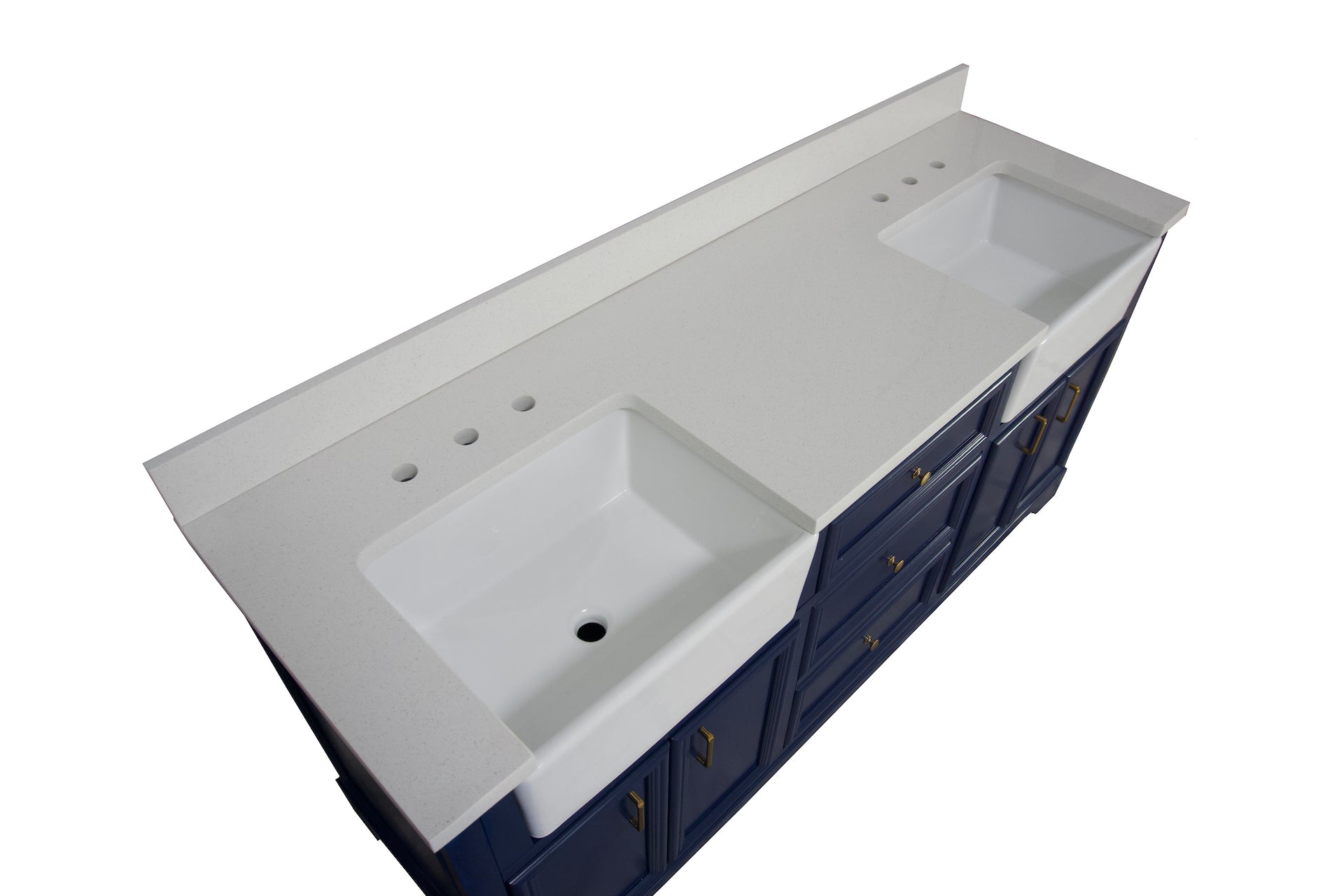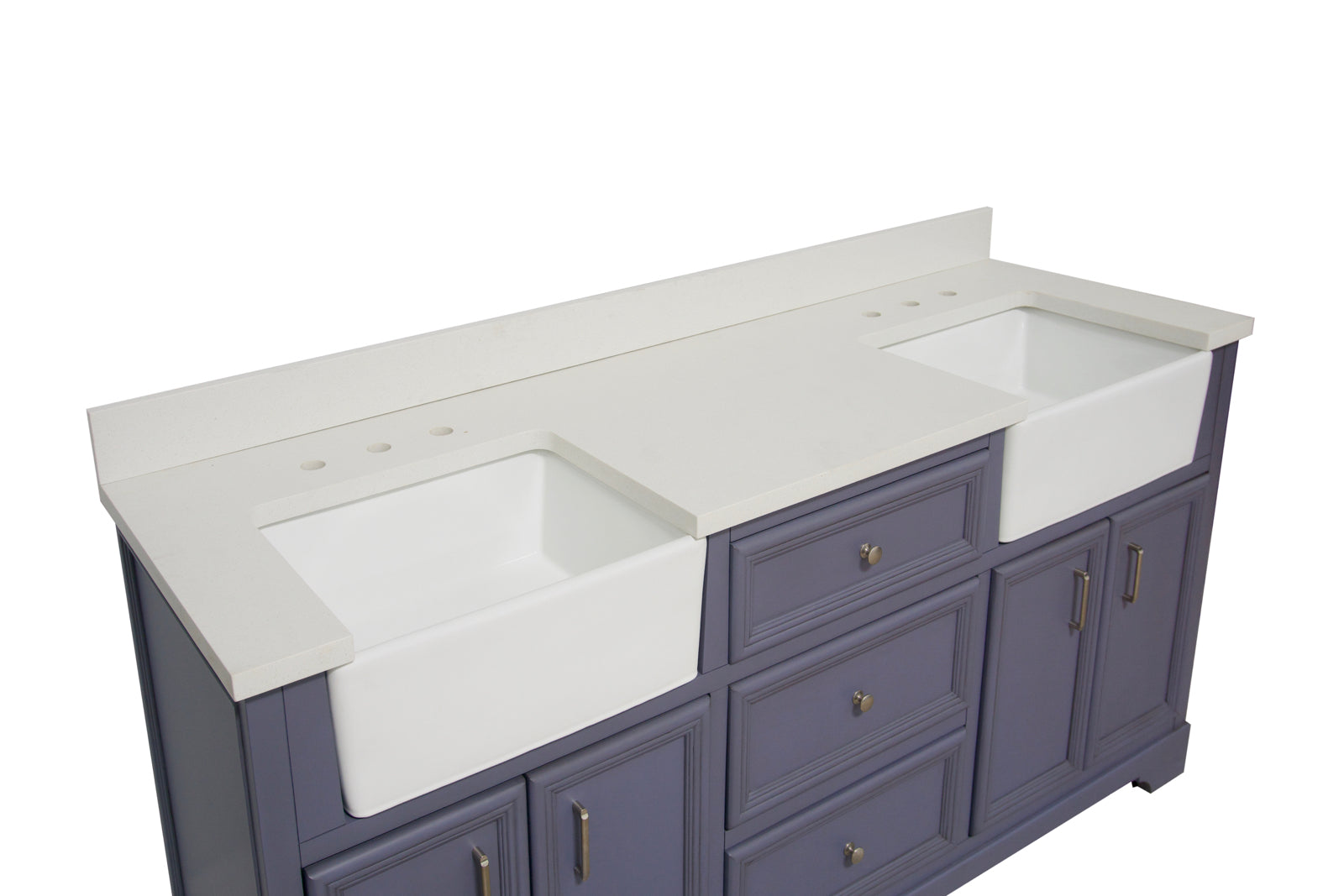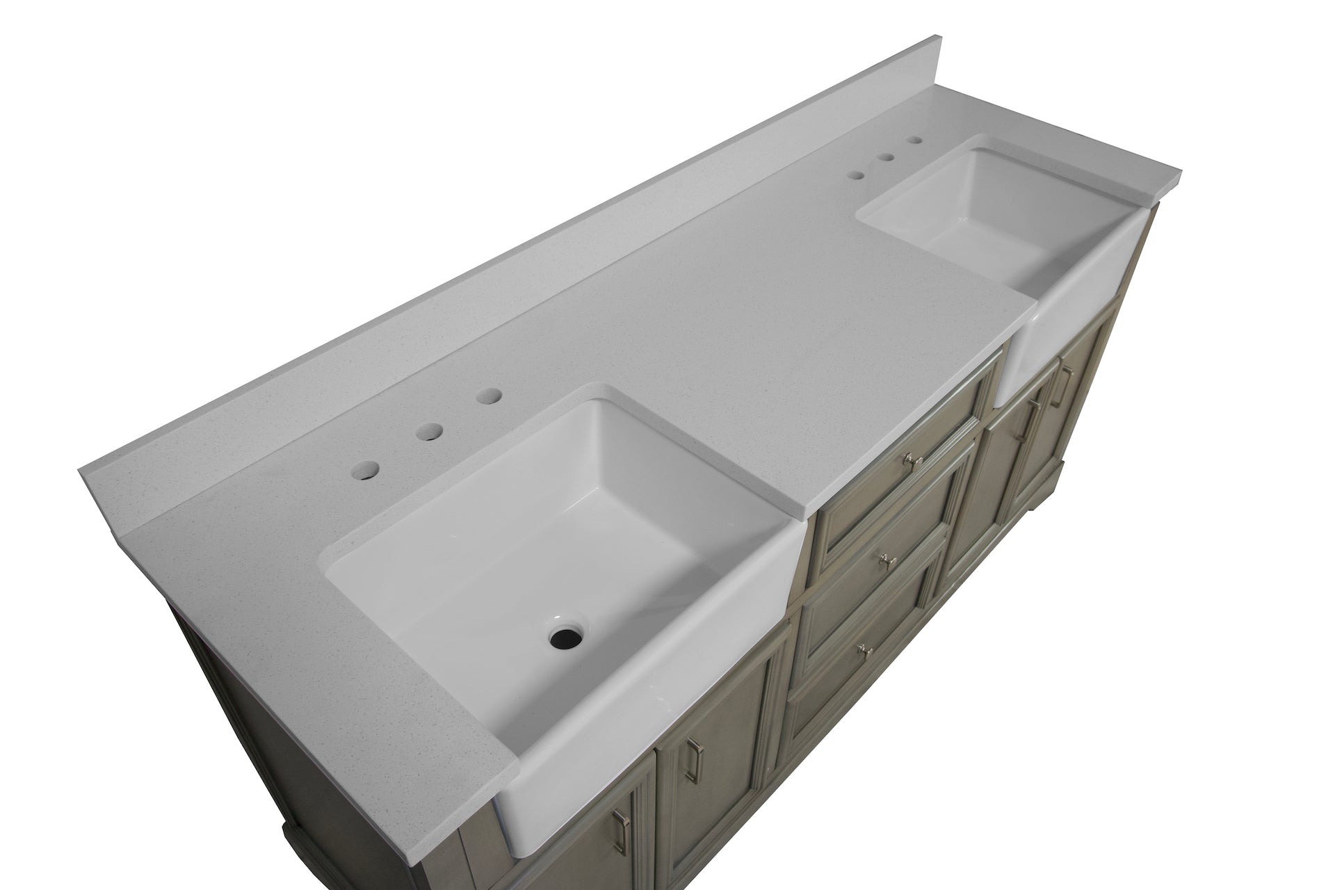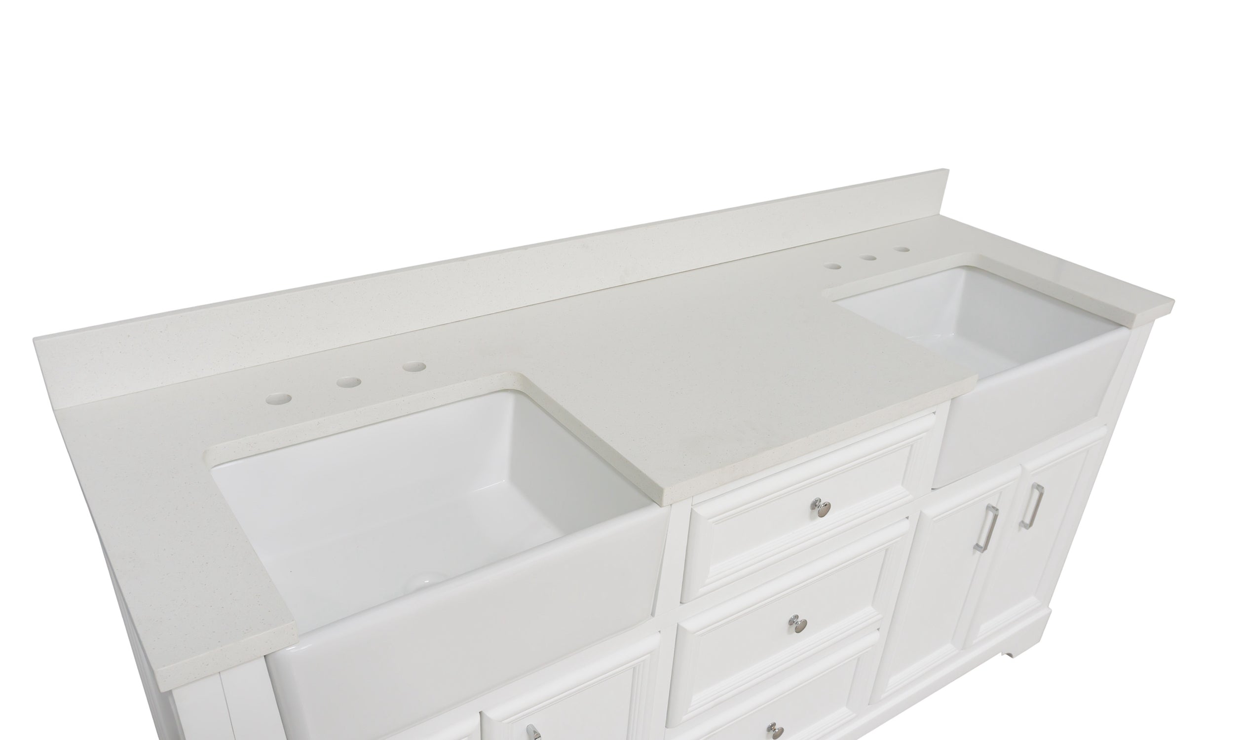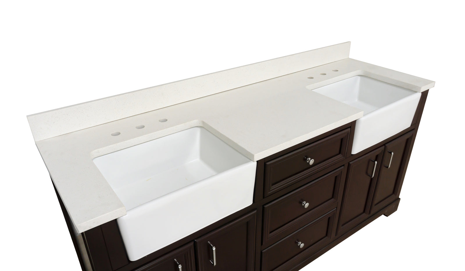 Faucet Requirement: Countertop is pre-drilled for two 8" widespread 2-handle faucets (not included)