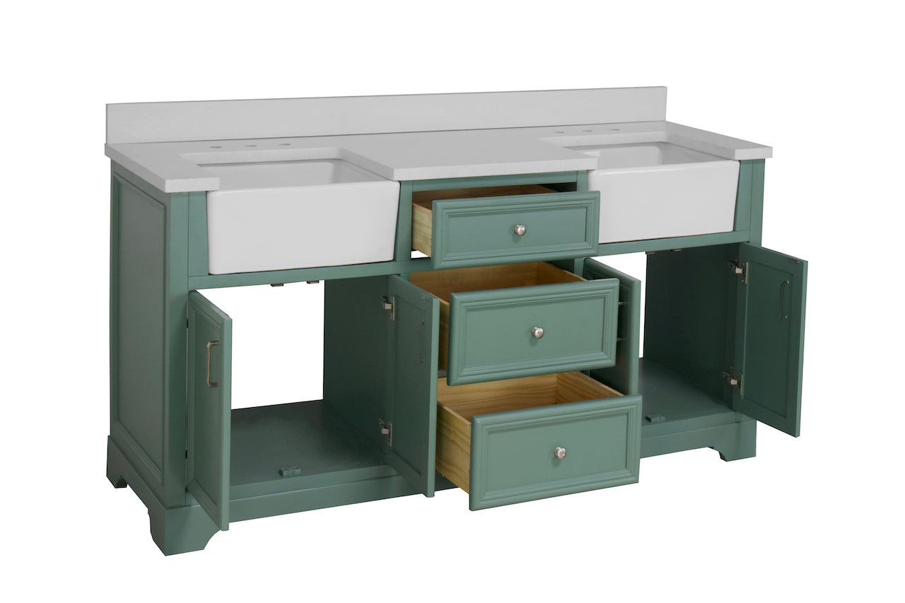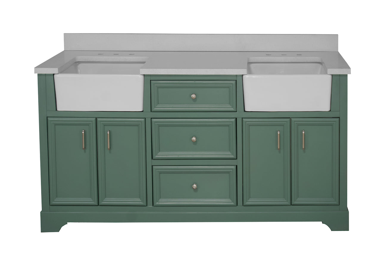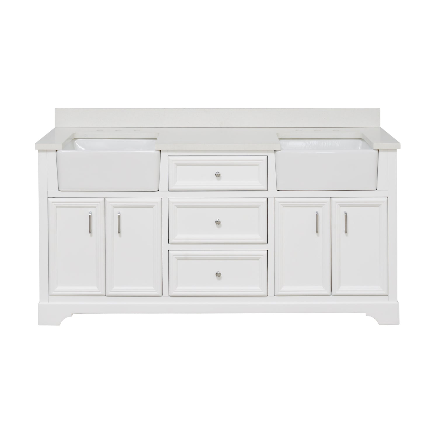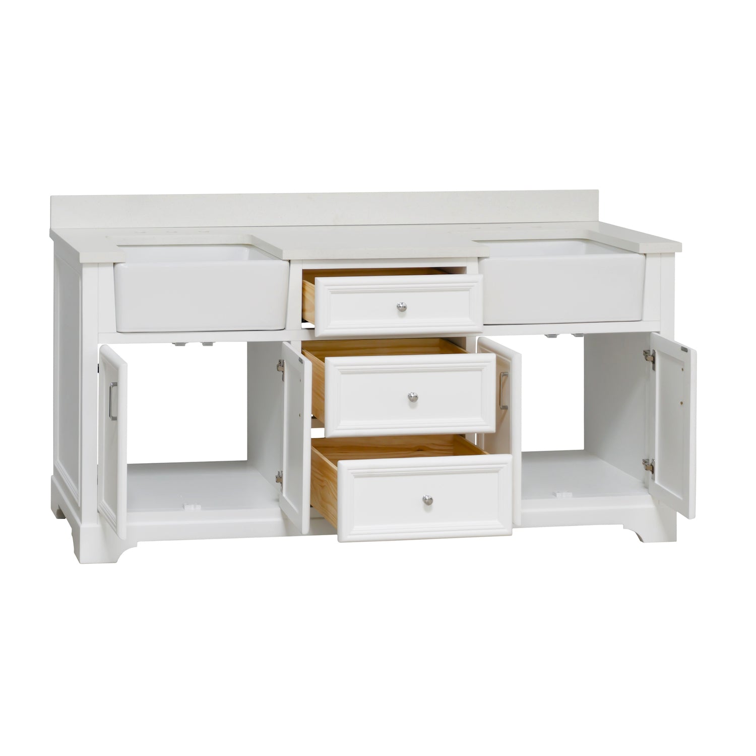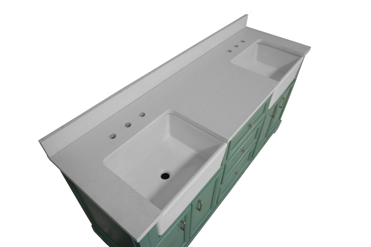 Faucet Requirement: Countertop is pre-drilled for two 8" widespread 2-handle faucets (not included)