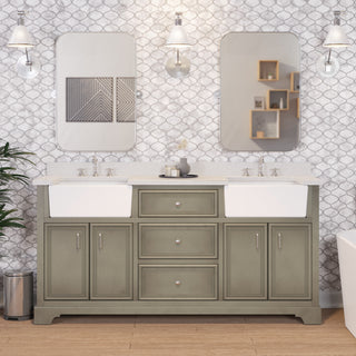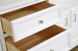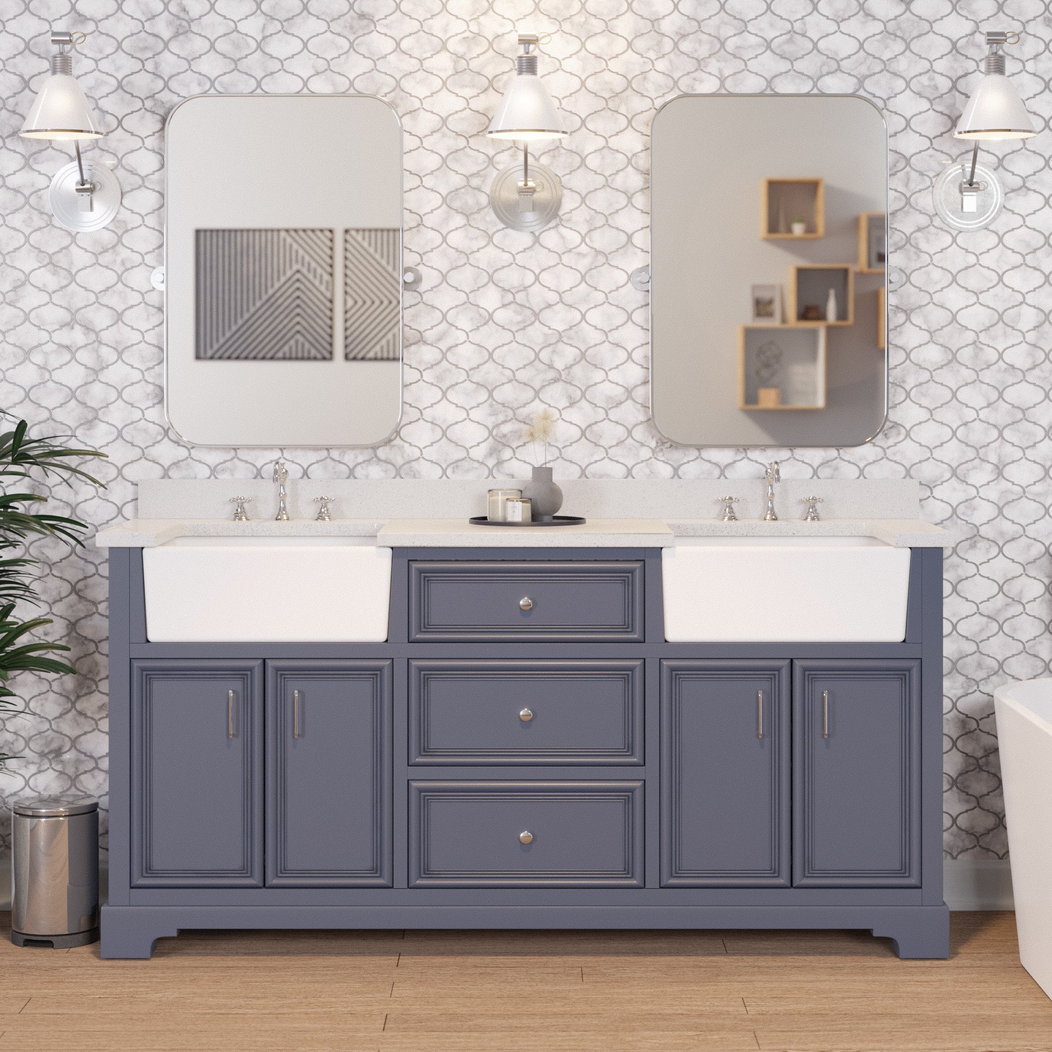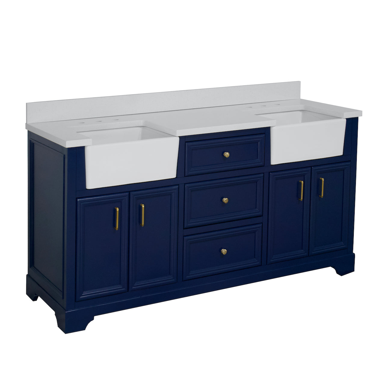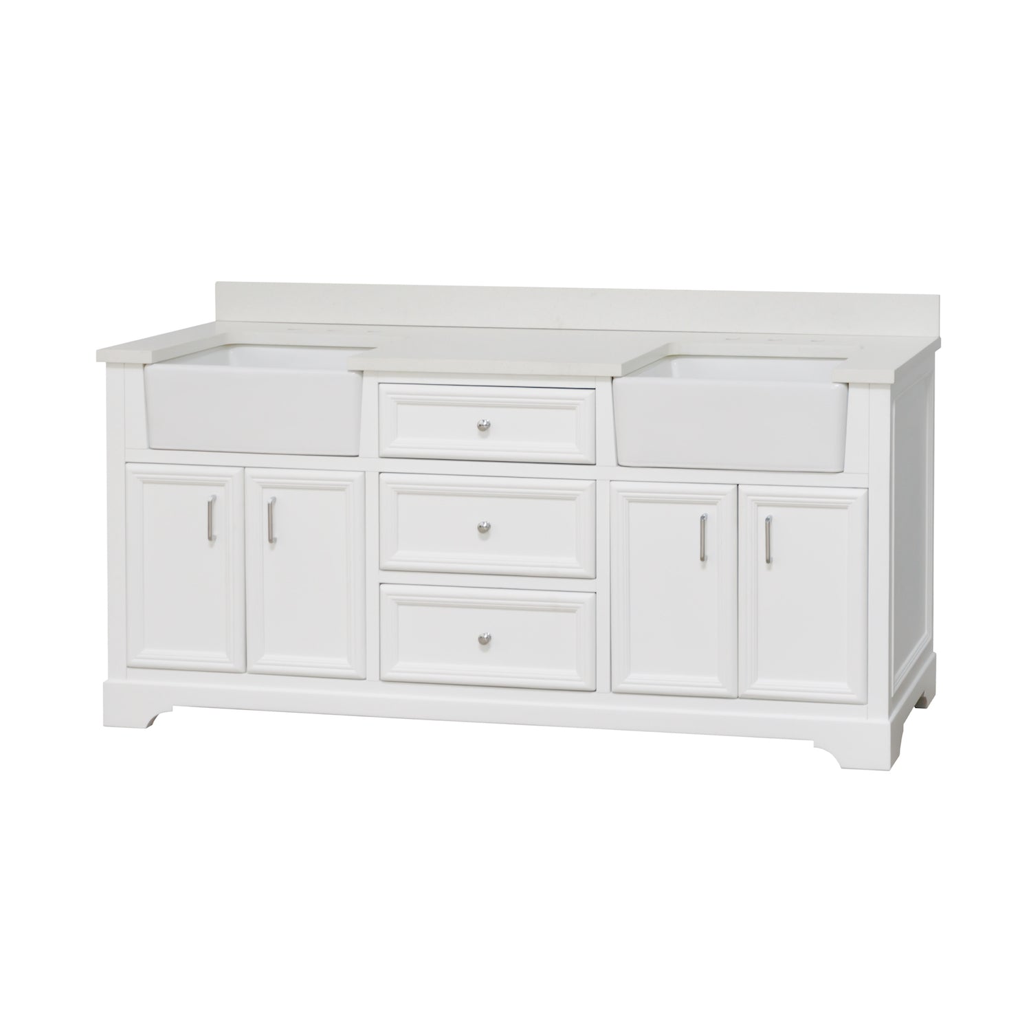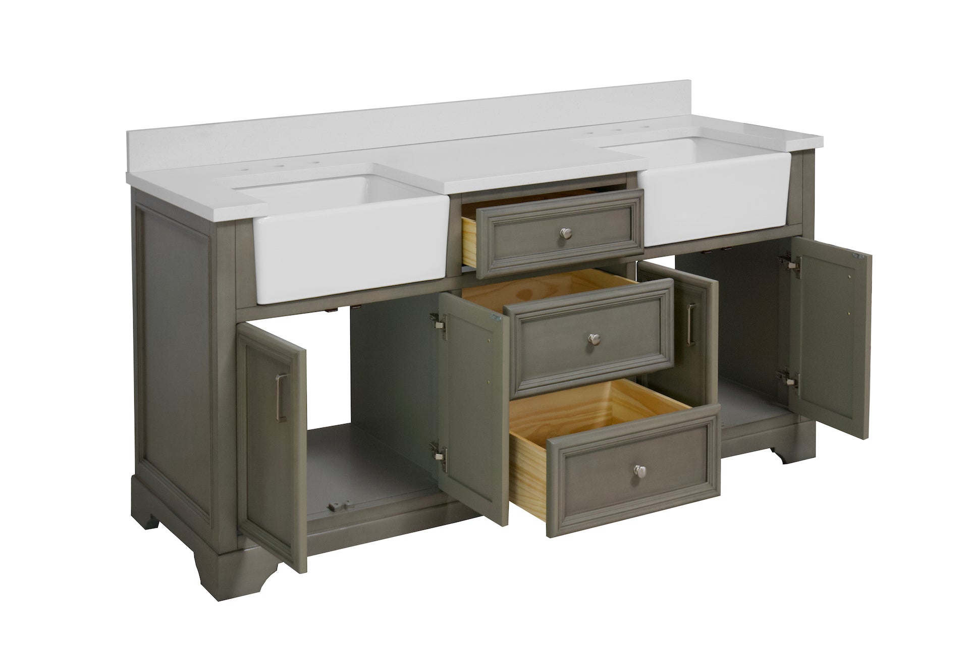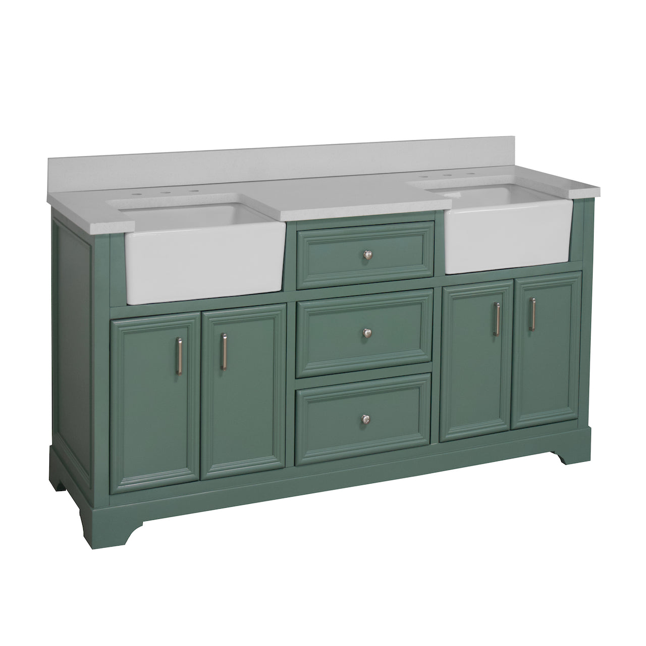 Faucet Requirement: Countertop is pre-drilled for two 8" widespread 2-handle faucets (not included)